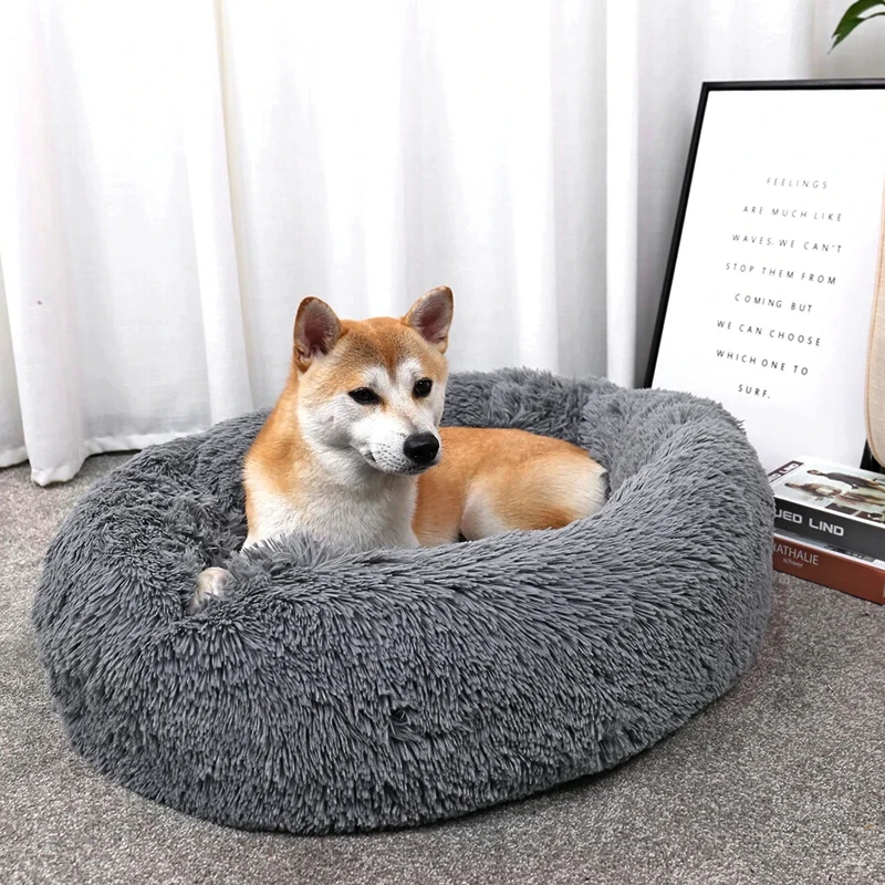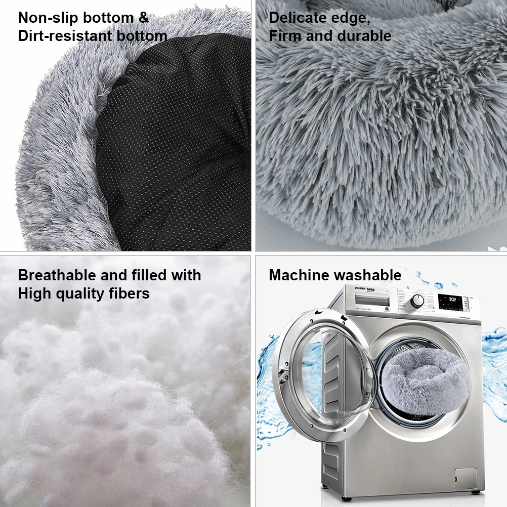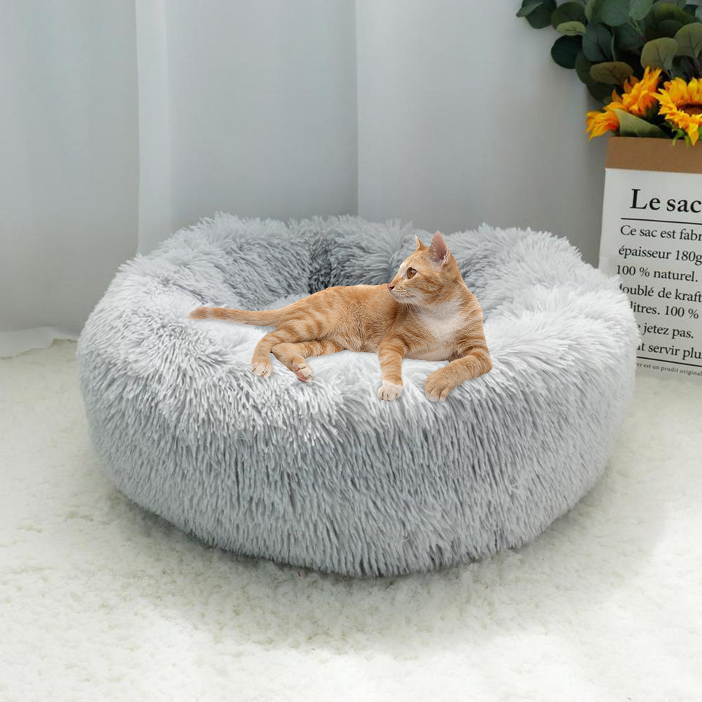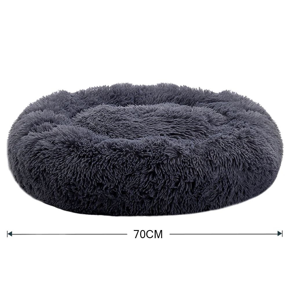 70CM Donut-Shaped Plush Pet Cuddler Bed Machine Washable Anti-Slip for Dog&Cat House Winter Warm Sleeping