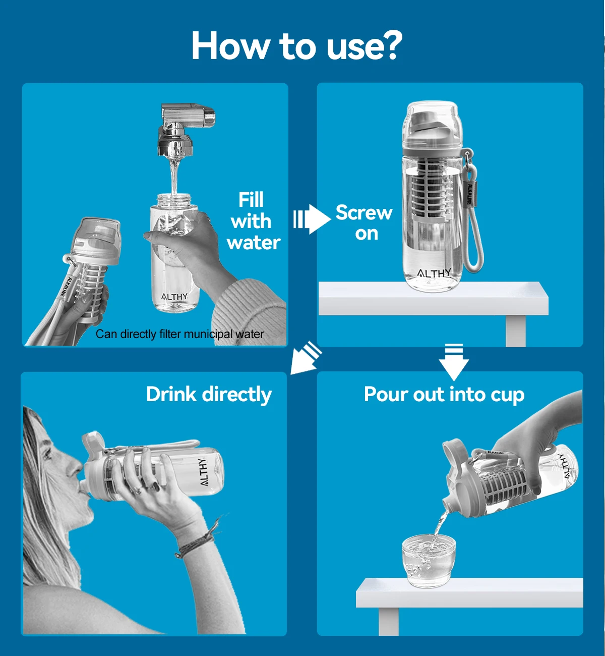 ALTHY BPA-Free PH 9.5 Alkaline Filtration Bottle