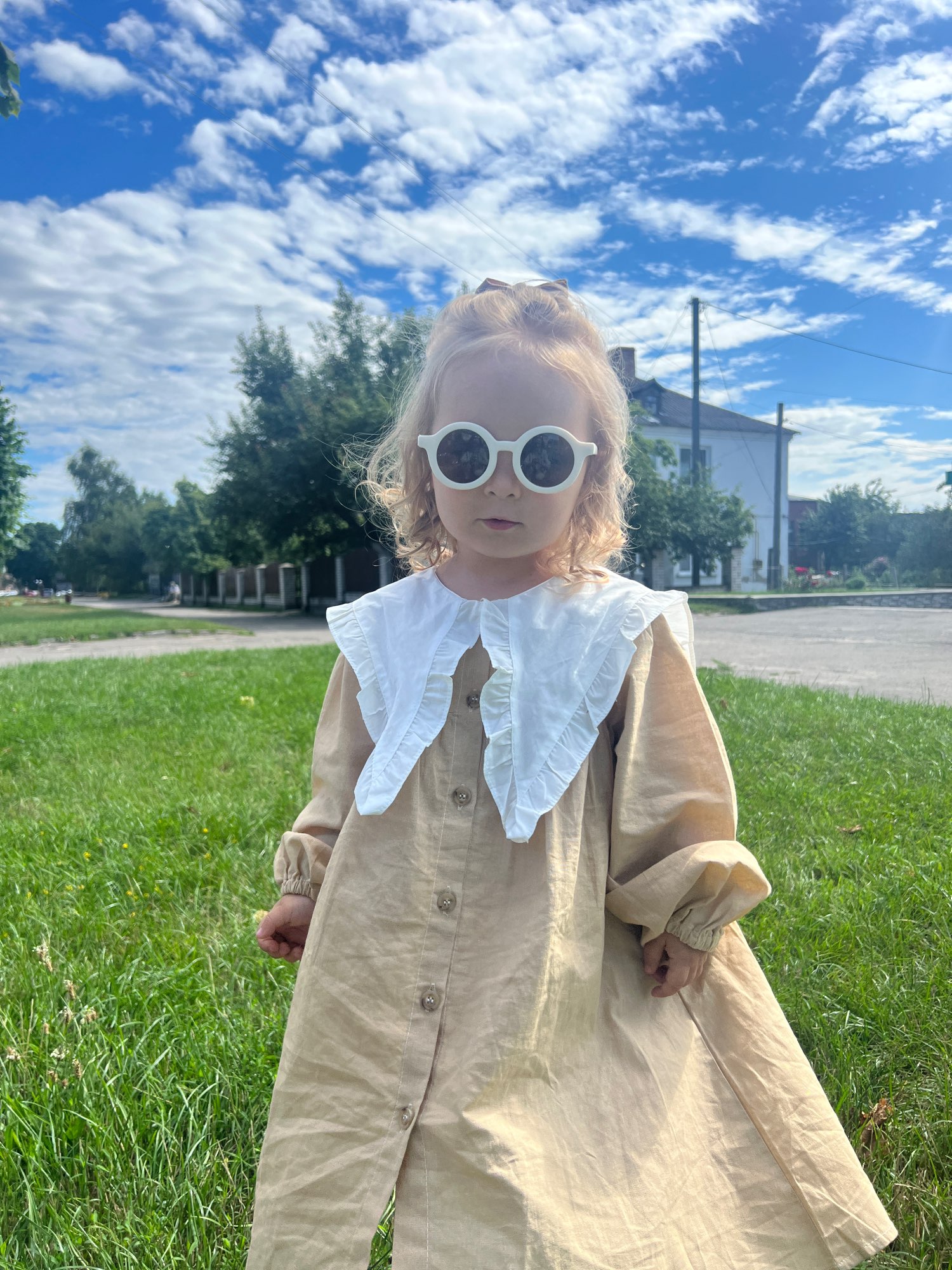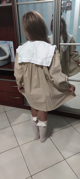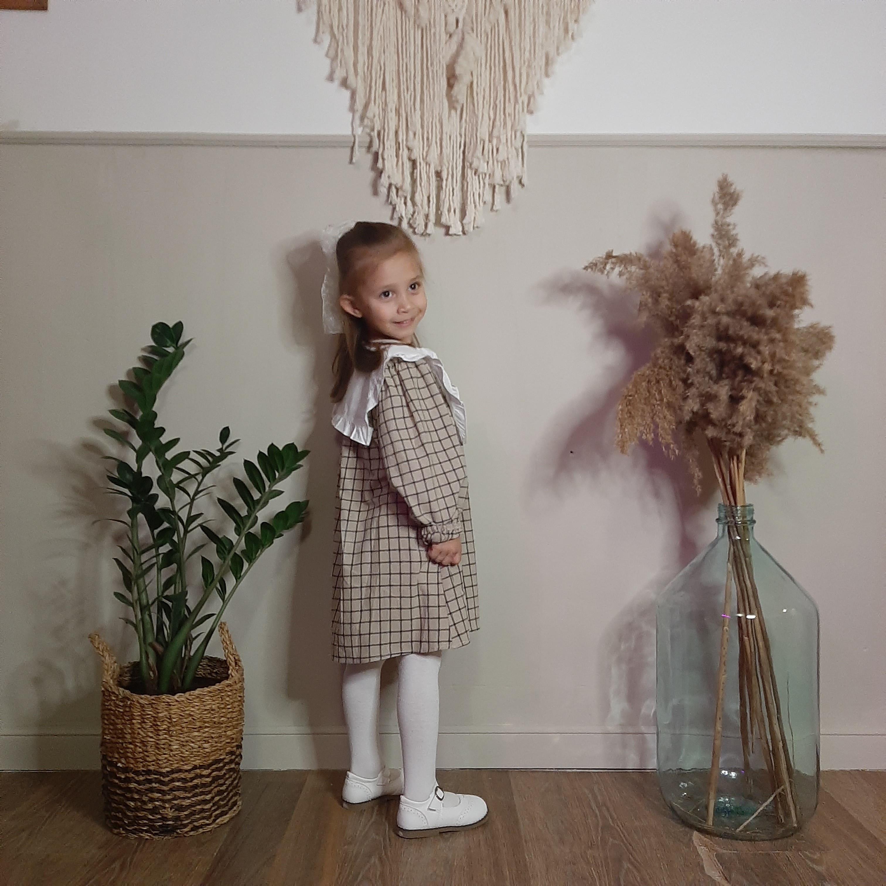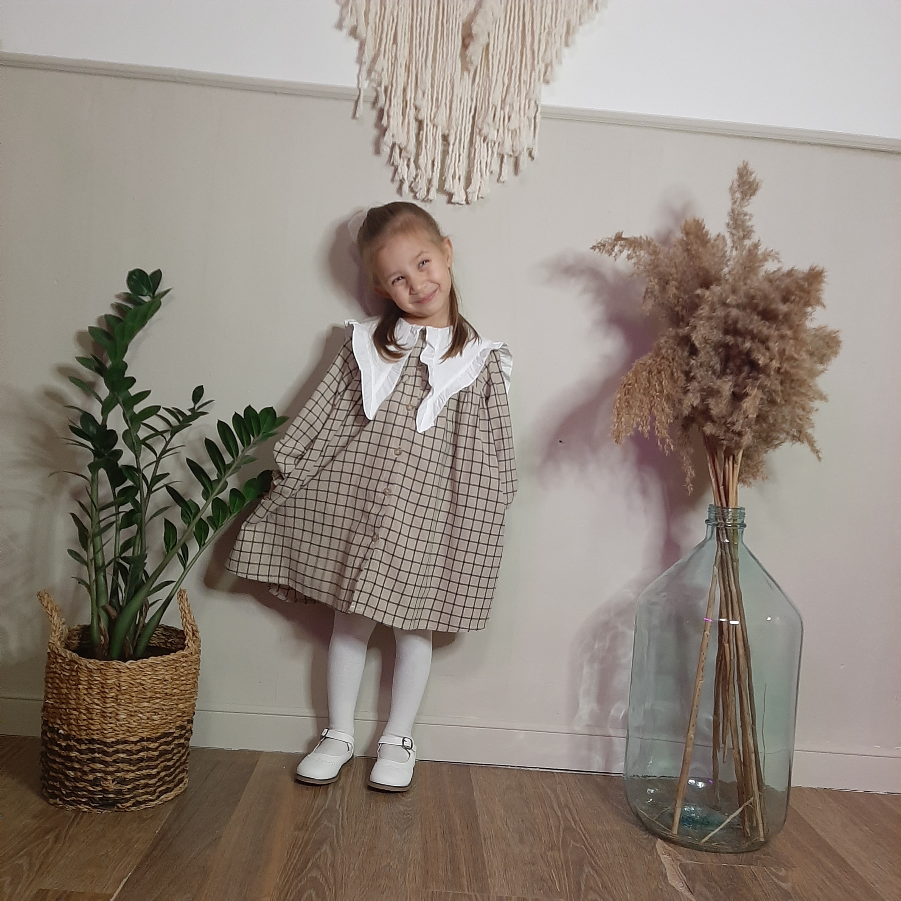 • Turn-down Collar :The dress features a stylish turn-down collar that adds a touch of sophistication to your little girl’s outfit.