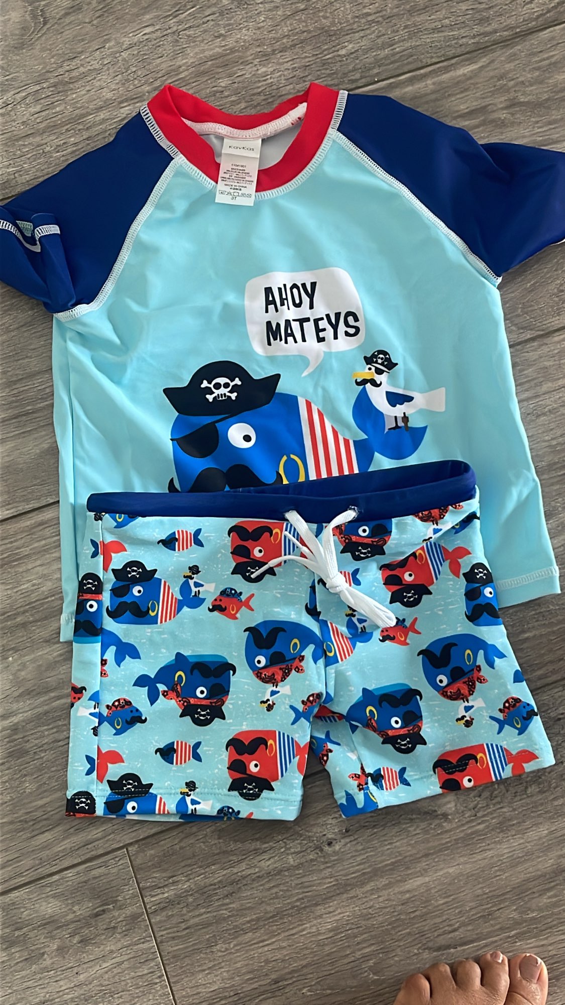 The order arrived in Estonia in 3 weeks. Took a size of 3 tons per child, aged 1 year and 7 months (a long person). Measured his usual T-shirts and shorts and matched the size that way. Fit perfectly.