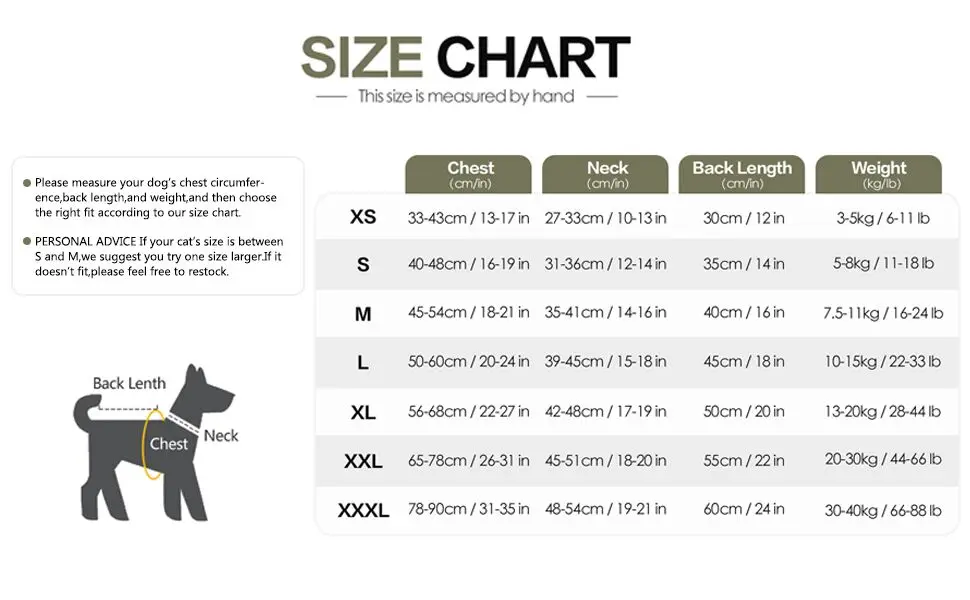 This dog bodysuit is available in 7 sizes,ranging from XS to 3XL, ensu