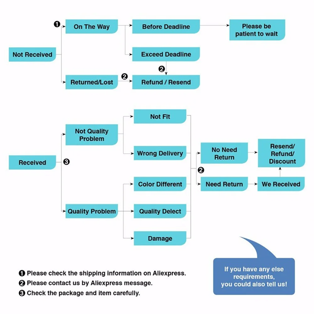 • If you did not receive the product within the guaranteed time( 45 days not including 2-5 day processing) you can request a refund or a reshipment.