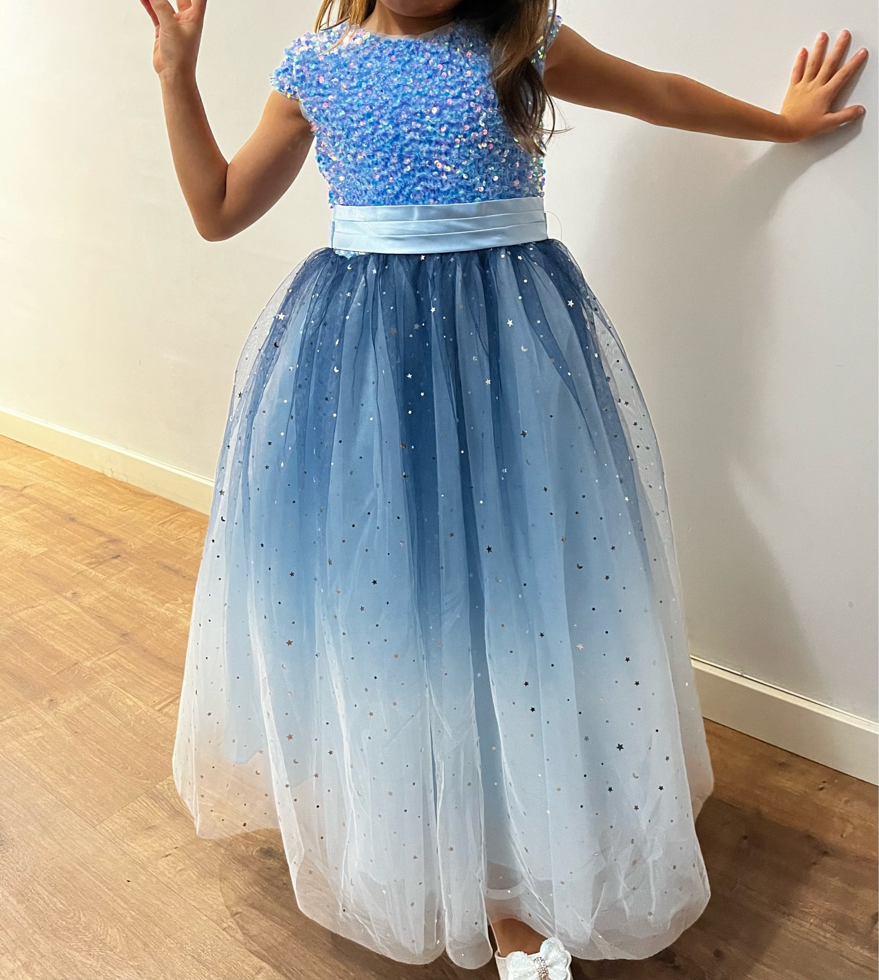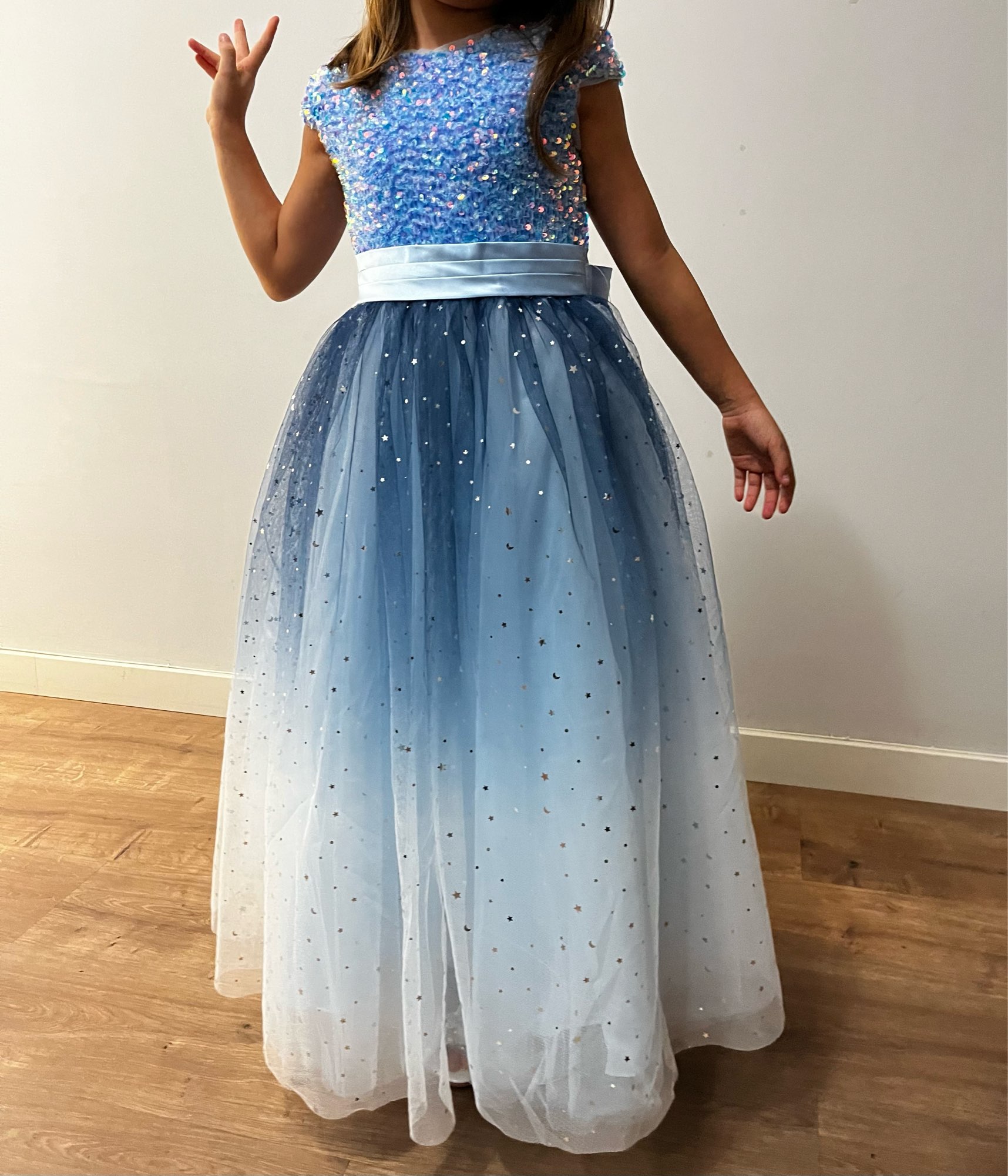 The size of the dress was the good one and my daughter adoring, she shone in the group