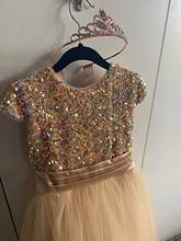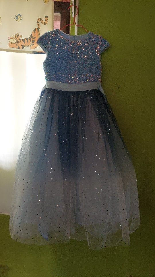 The dress is beautiful, the fabric, the finish very cute, a little long but solvable, my little girl is happy
