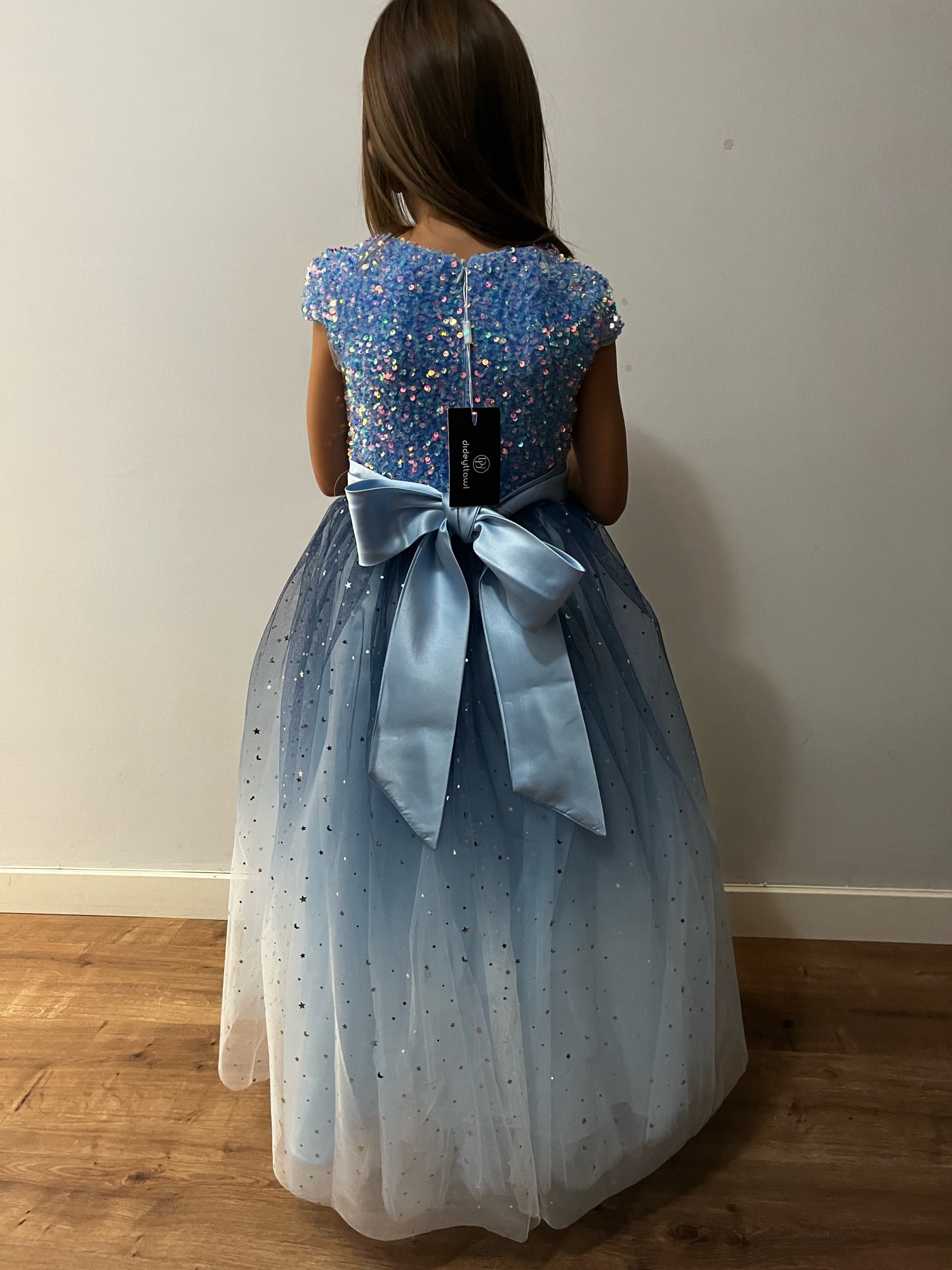 I am delighted, I arrived before the indicated date, 2 weeks before, and I asked for it personalized. Very good communication with the store, my niece looks beautiful and will be like Princess on my wedding day❤️
