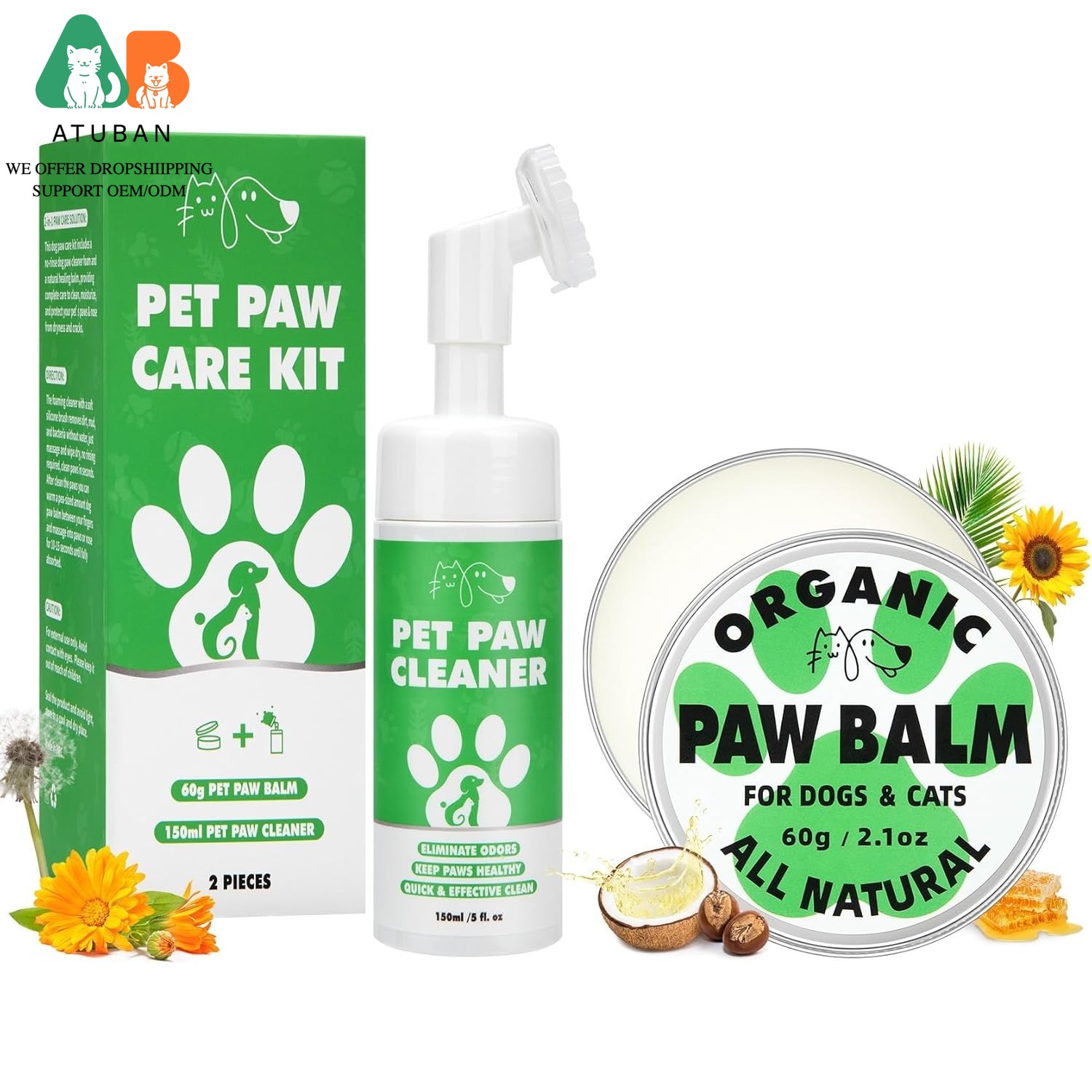 Dog Paw Care Kit with No-Rinse Foam