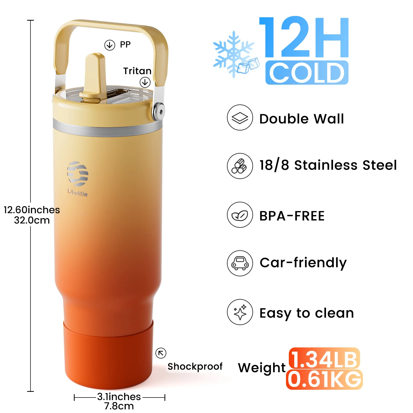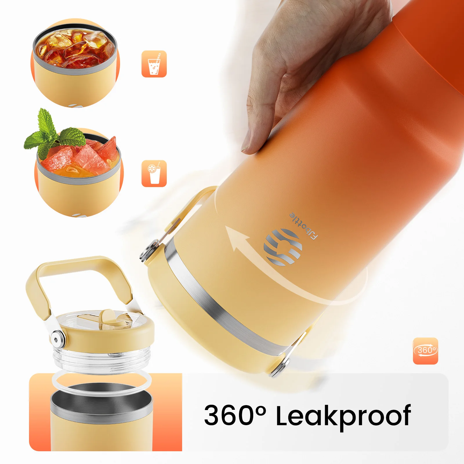 FJbottle 1200ml Stainless Steel Vacuum Handle Tumbler