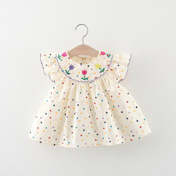 Sweet Rose Embroidered Small Round Dots Dress