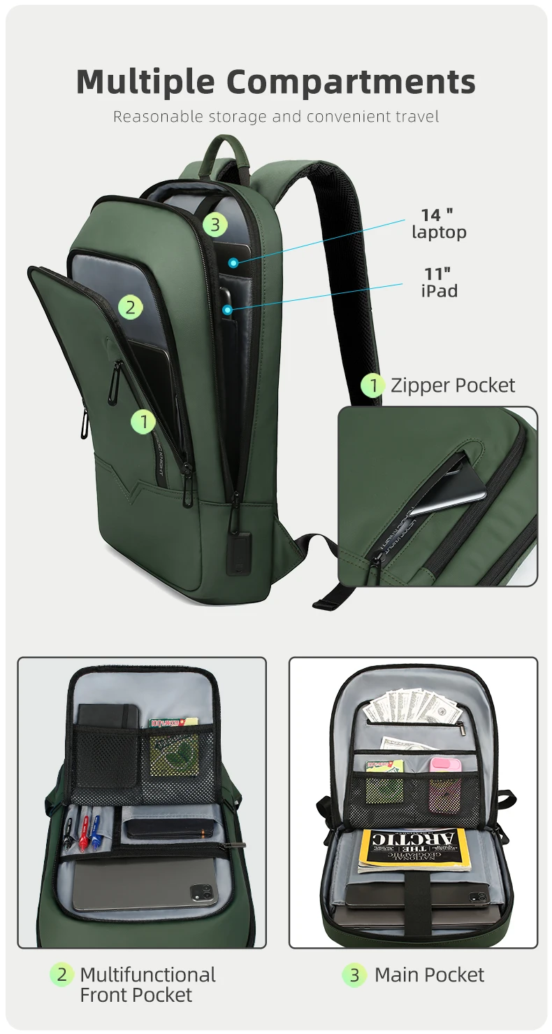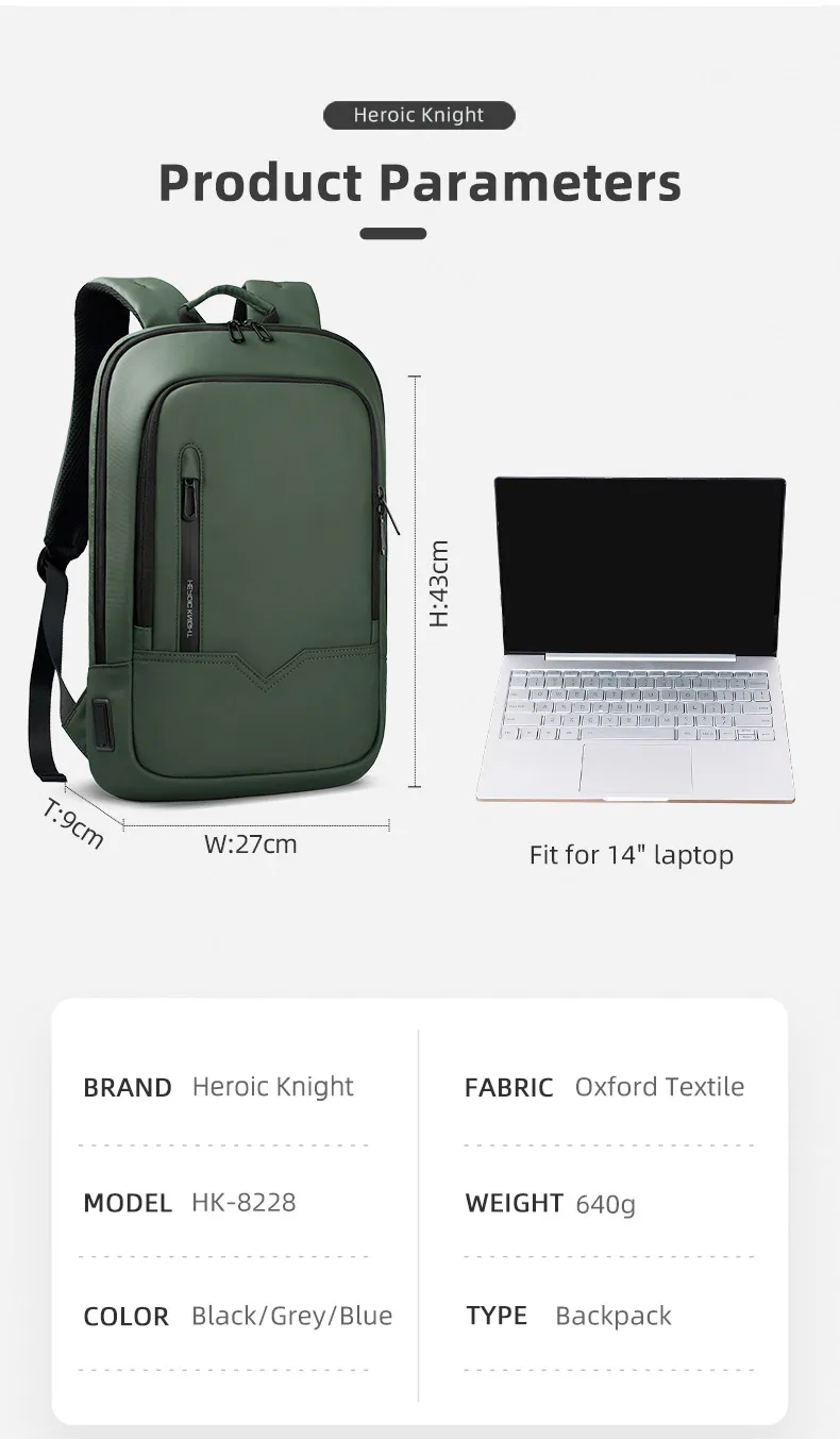 Heroic Knight Slim Lightweight Business Laptop Backpack