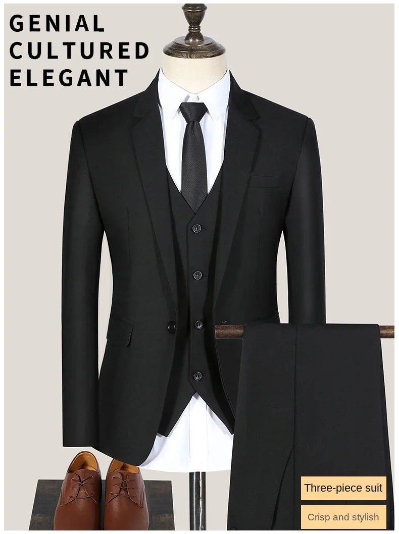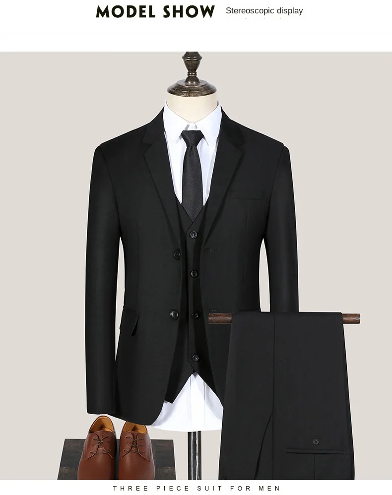 This product has two styles: three-piece set and two-piece set. The three-piece set includes jacket vest and pants, and the two-piece set only includes jacket and pants, without vest. You can choose the appropriate suit according to your needs.