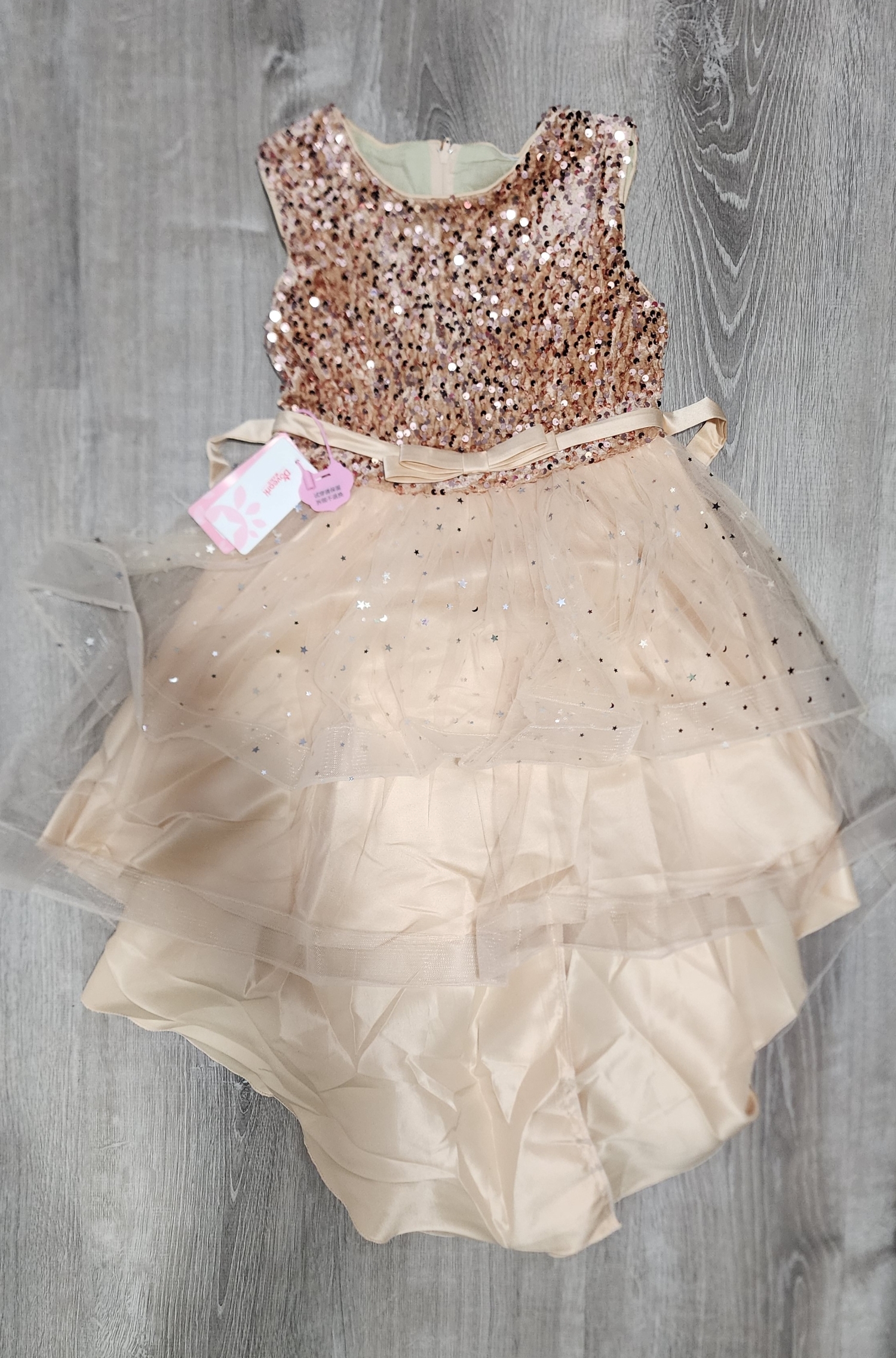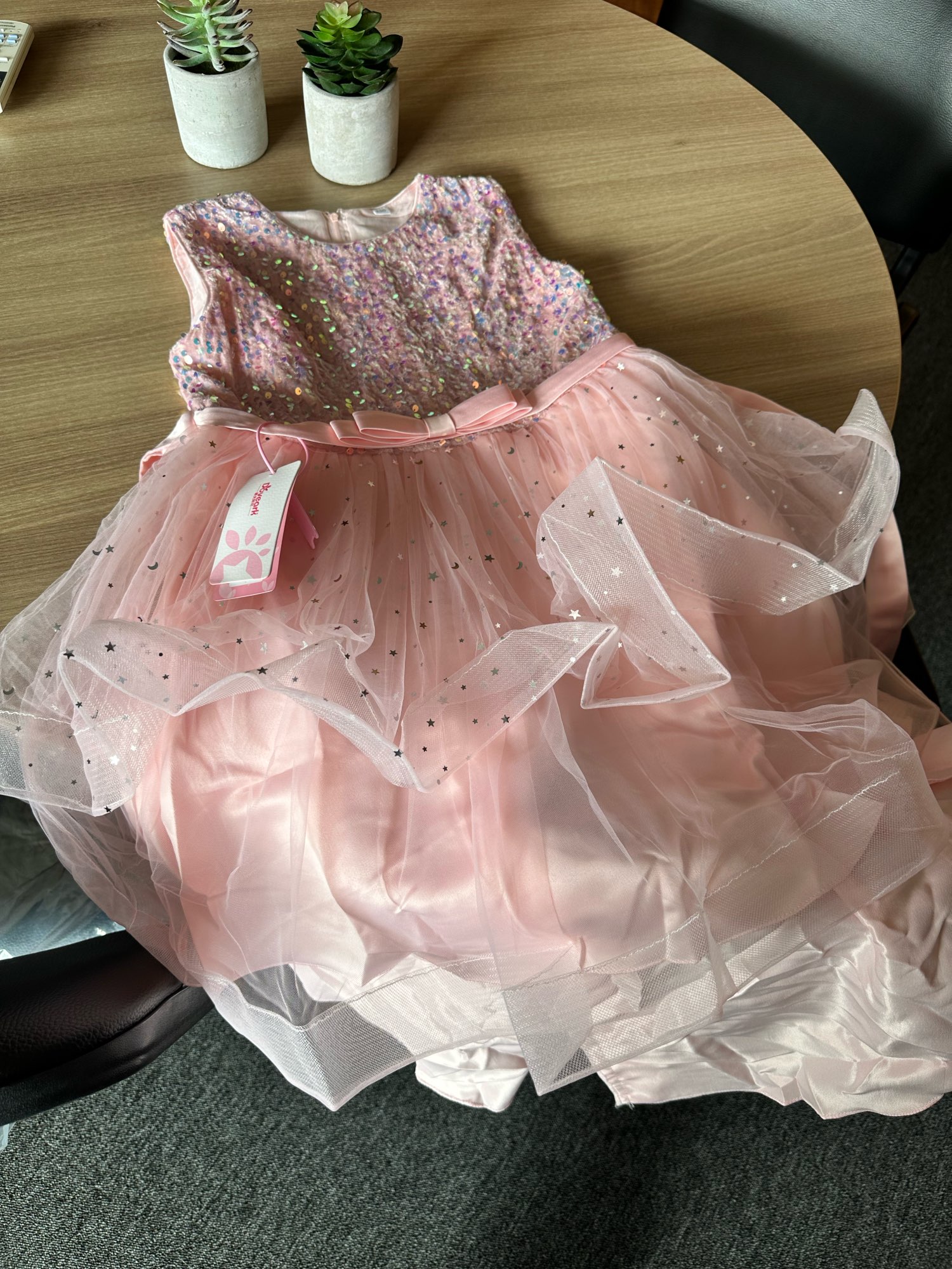 The dress is beautiful, it got a little bigger in my girl, but nothing to stop wearing. We love.