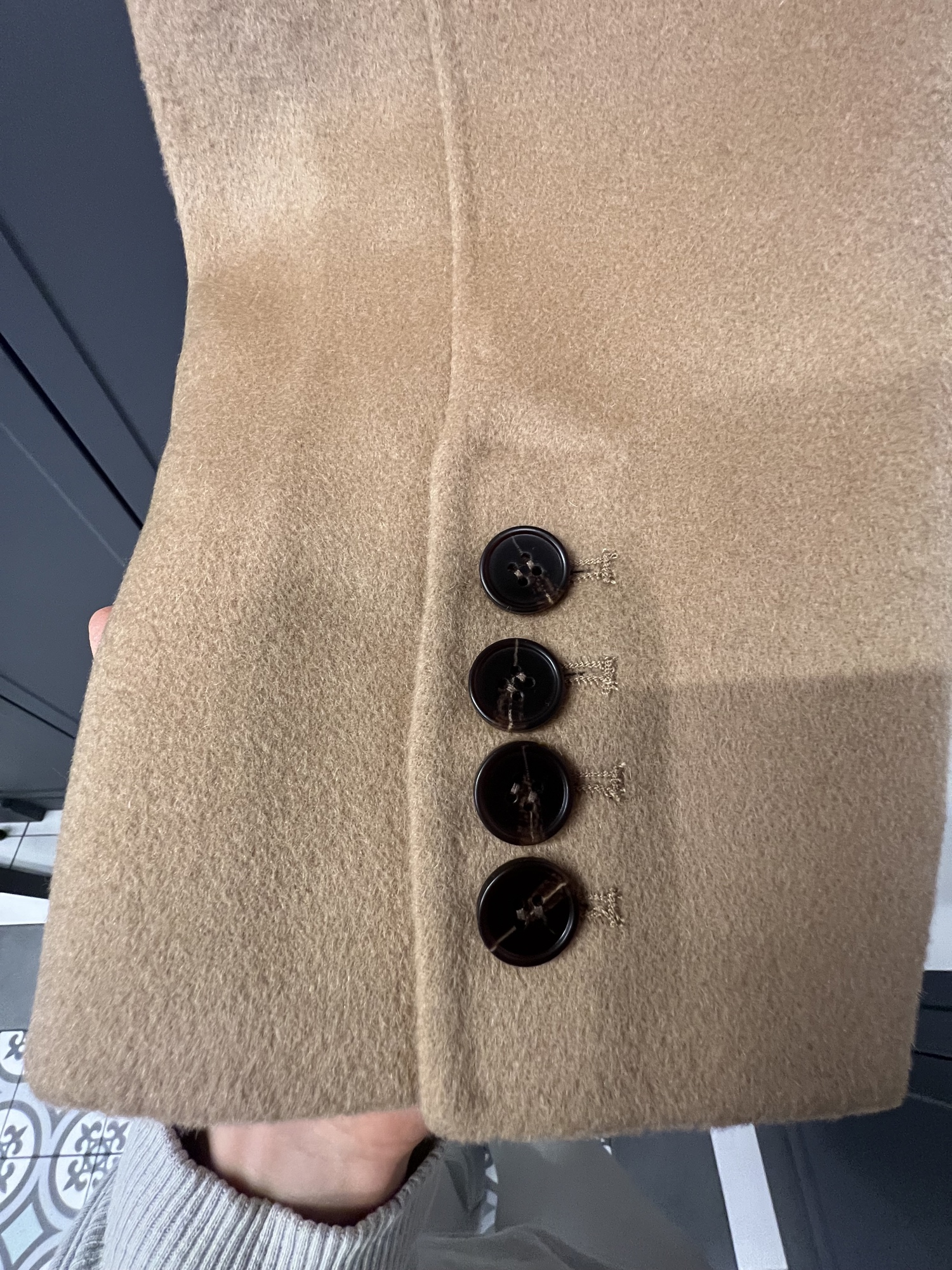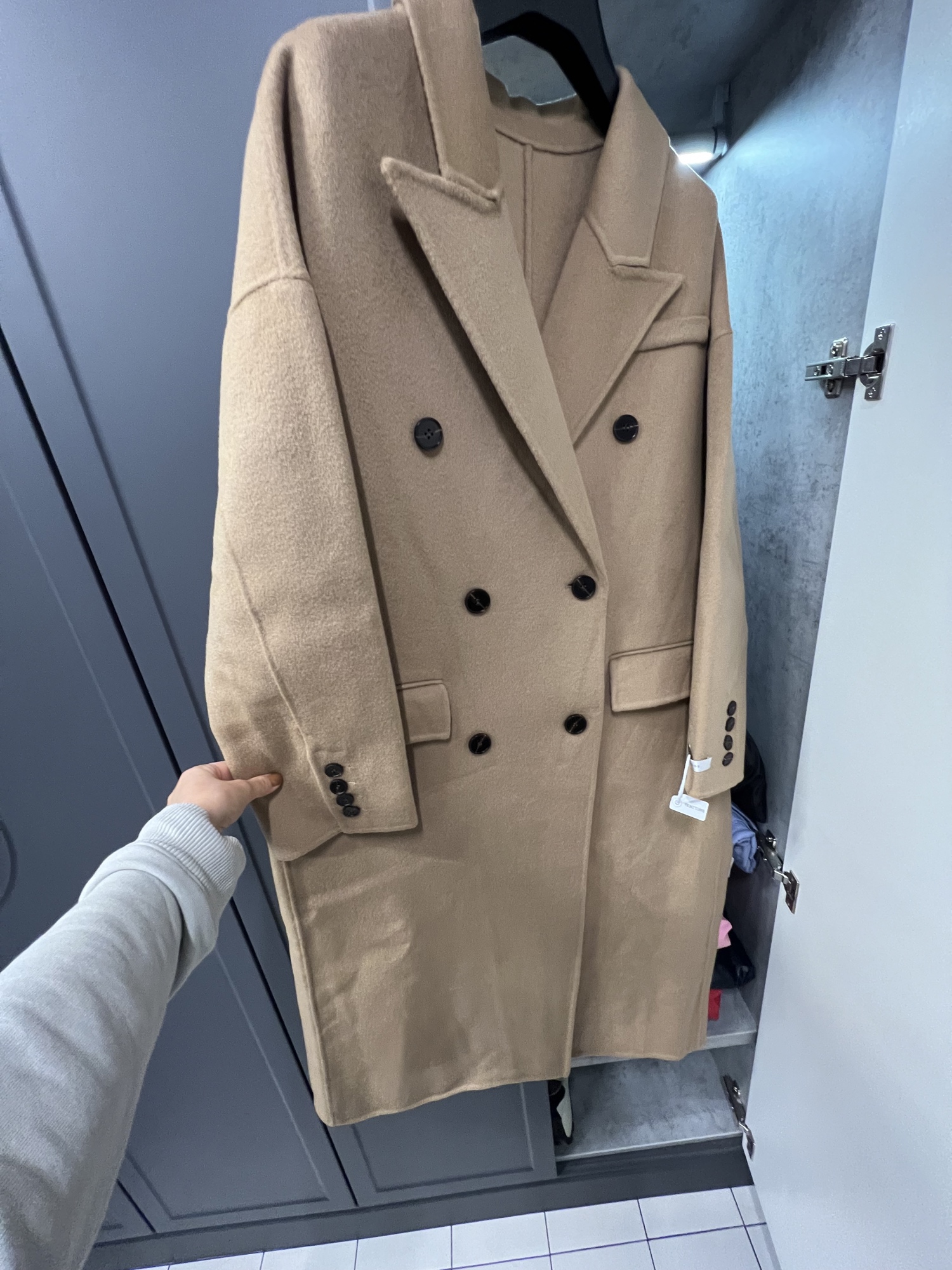 Excellent coat, delivered to Almaty in 6 days. The material and the tailoring itself from both the front and the wrong side is ideal, the color is blue-green-very beautiful! Arrived packed in polyethylene and a box, with a neckerchief as a gift. In short I am very satisfied, I recommend!