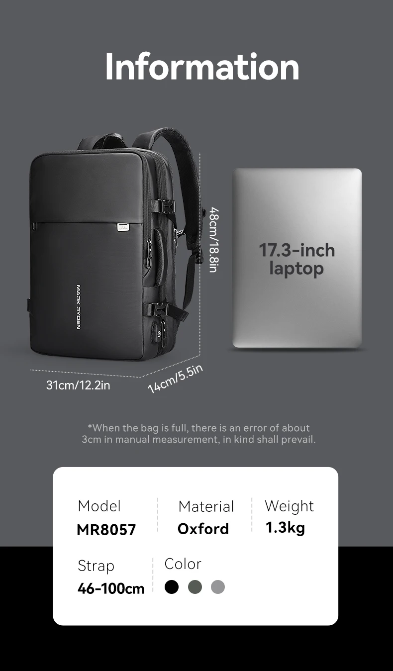 Mark Ryden 39L Expandable 17.3-inch Laptop Backpack