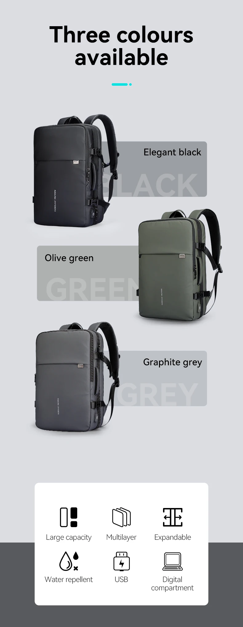 Mark Ryden 39L Expandable 17.3-inch Laptop Travel Backpack