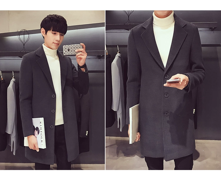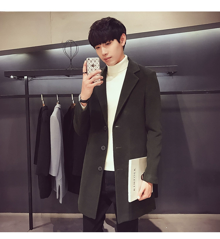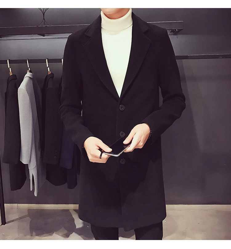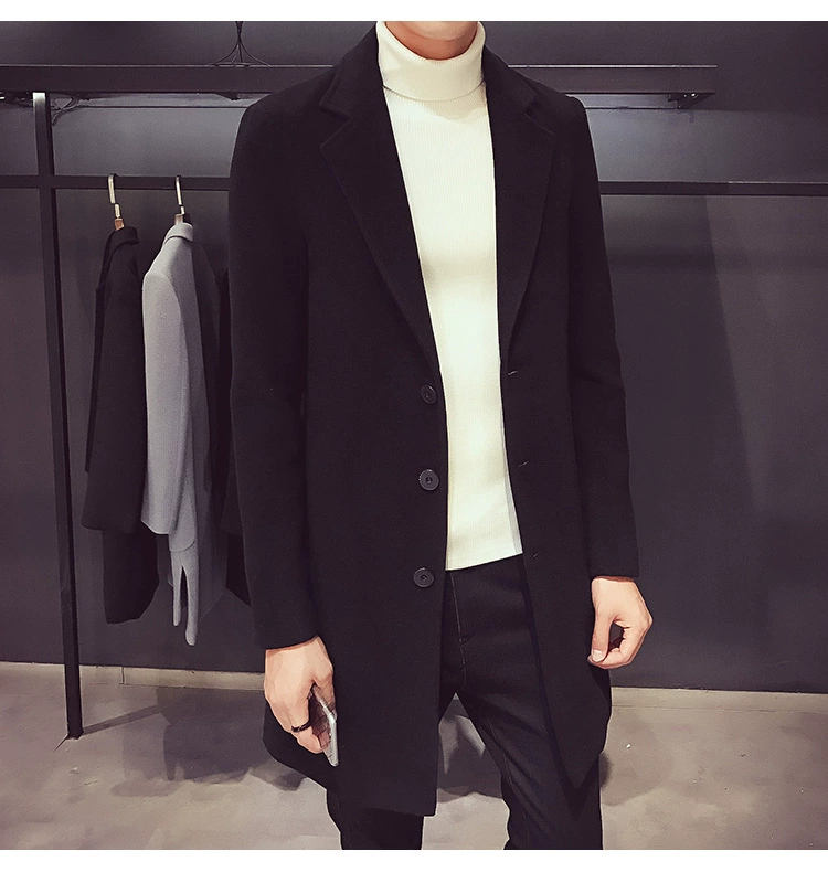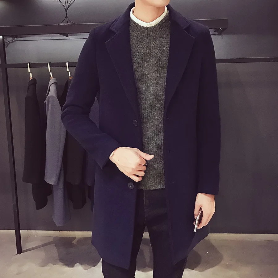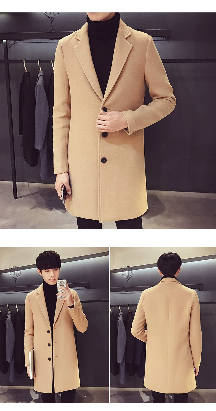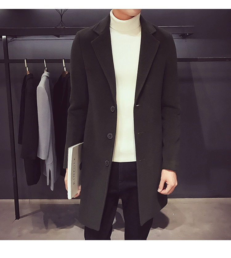 Men Long Cotton Coat Slim Windbreaker