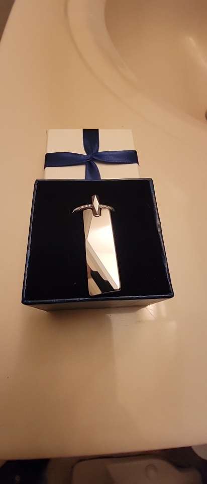 A VERY BEAUTIFUL NECKLACE!! Very shiny and glossy. However, im very disappointed in the packaging. Rather than putting the necklace in the gift box or at least in a gift bag, it was put in its shipping box unprotected. Otherwise, it's a very beautiful piece!