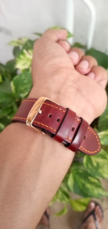 Beautiful watch. Resistant leather and robust machine. I recommend it.