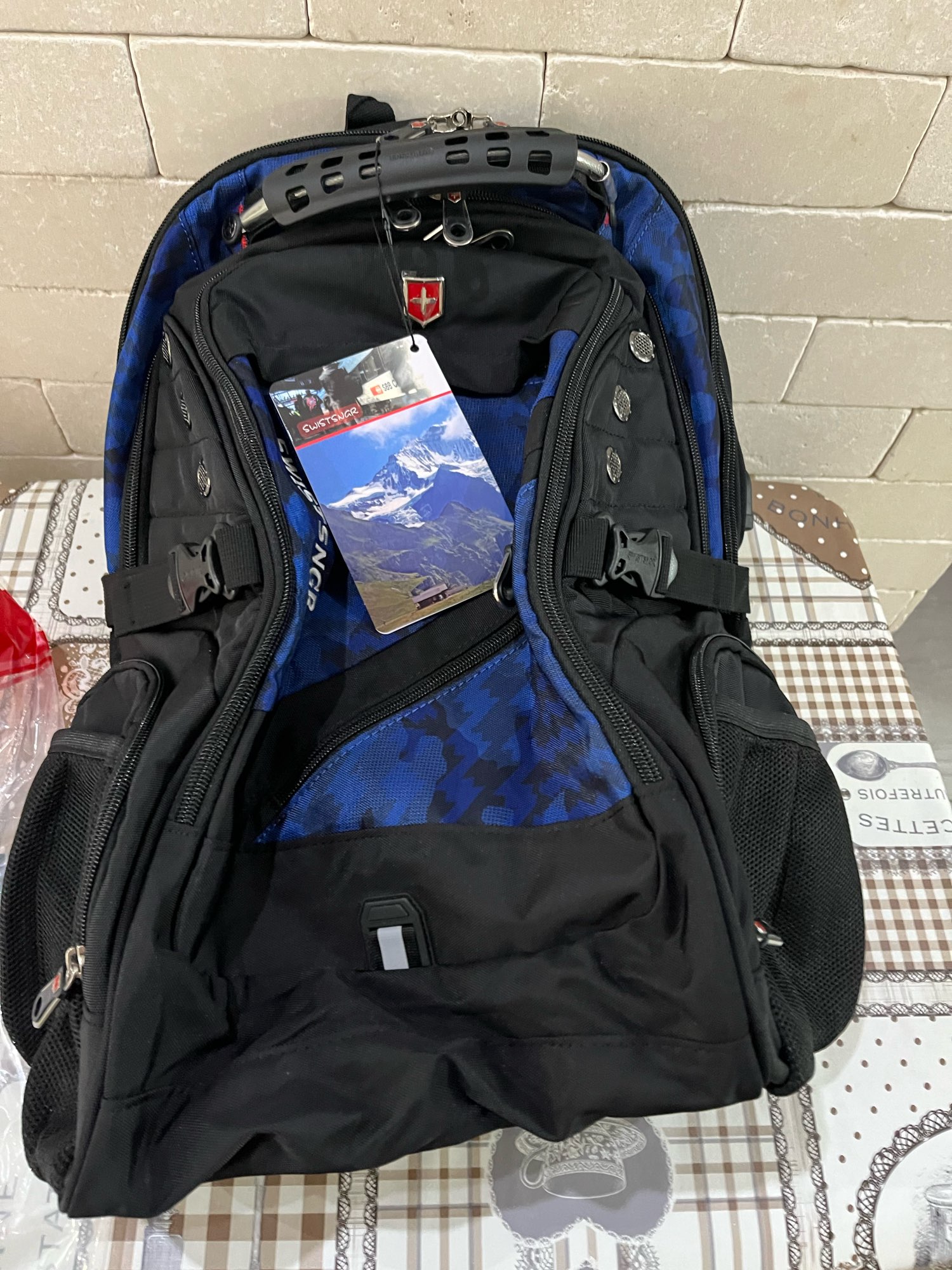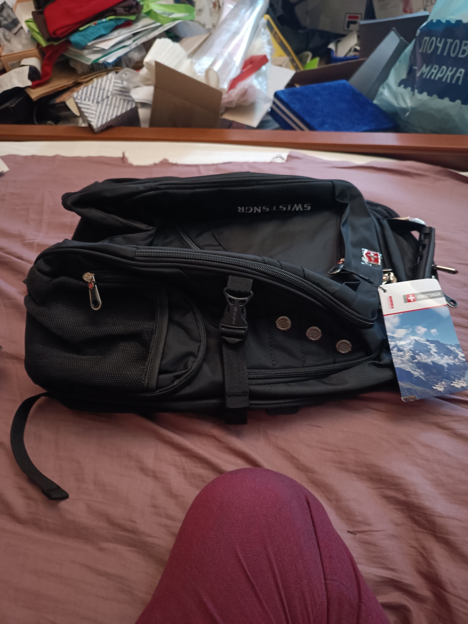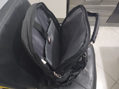 Backpack Super!!! Very large and roomy. Many departments. Quality material and stitching seams at height. There is not a single thread sticking out as is the case with Chinese things.