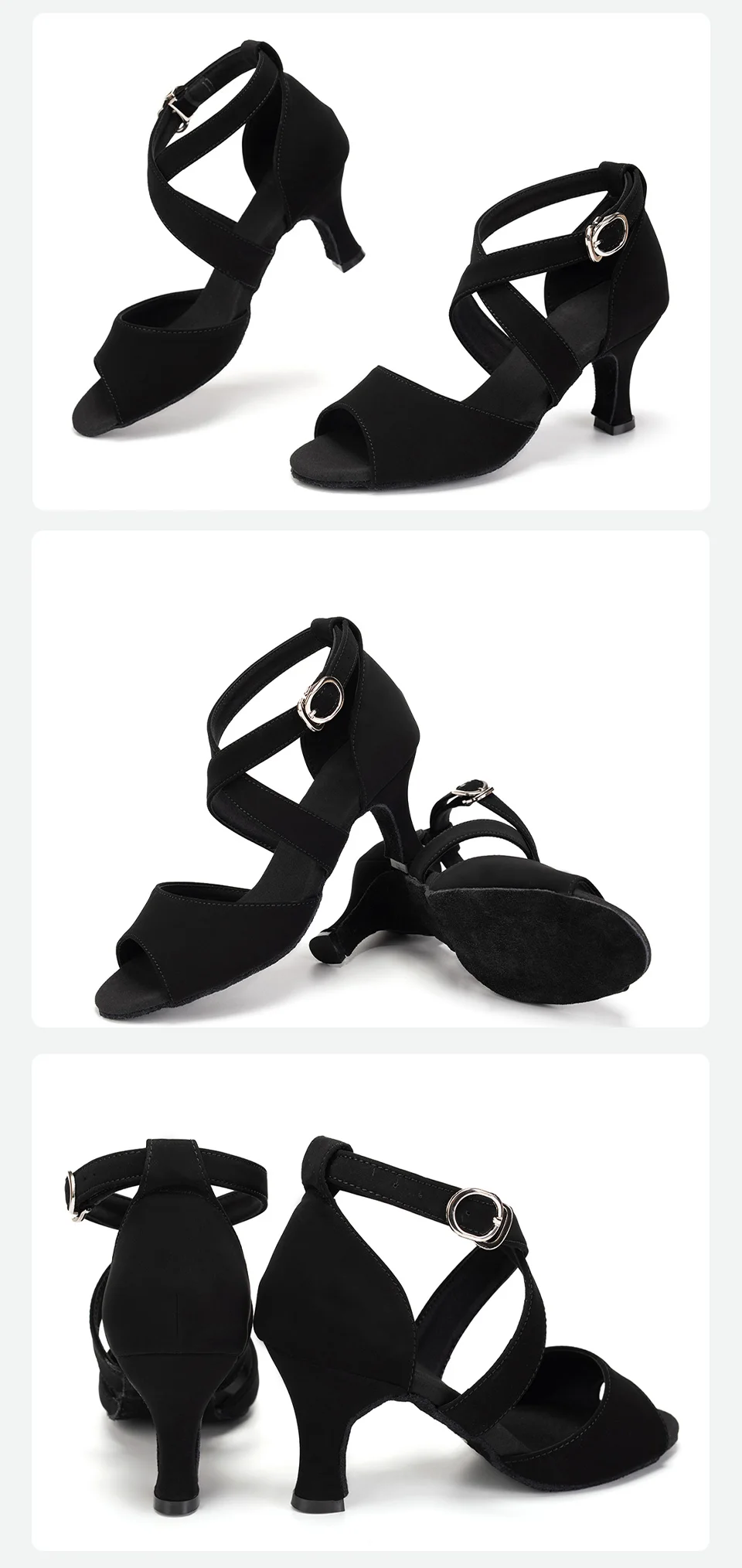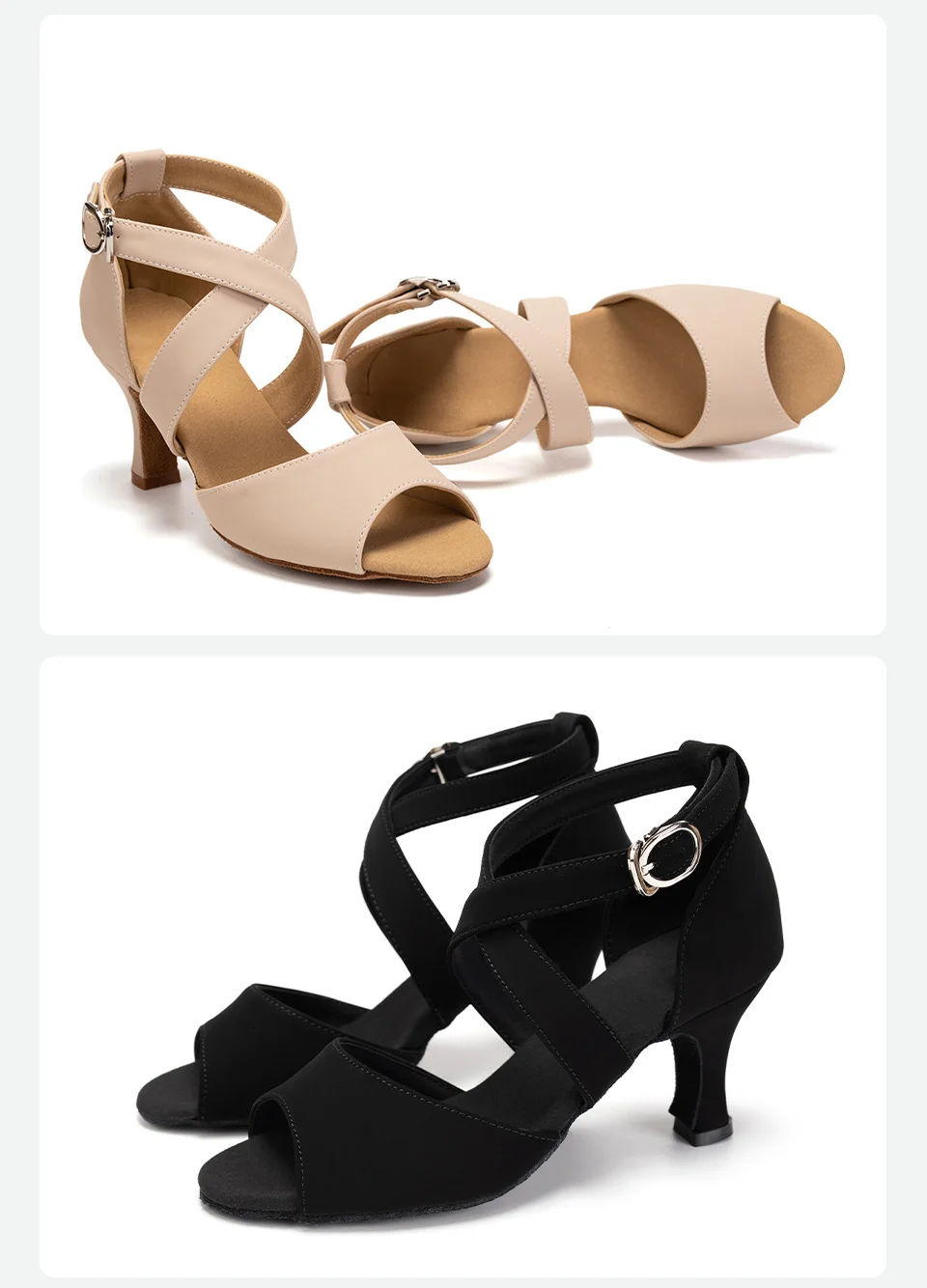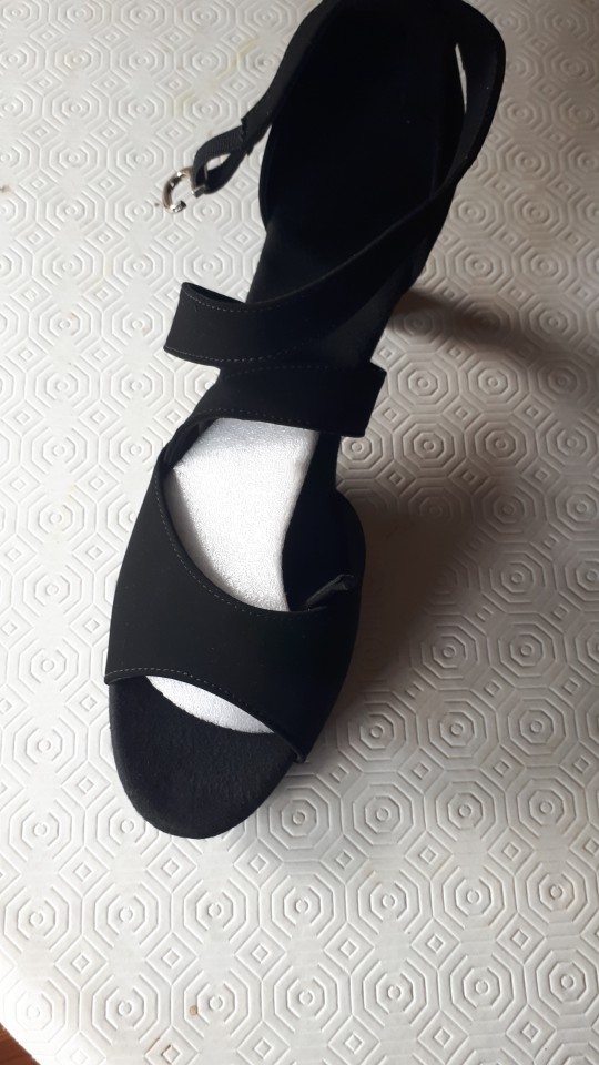 Dance shoes of excellent quality, two straps on the cross, which hold your foot well during the dance. Soft, body-friendly material. But you need to take a size larger. I have a foot of 25 cm, I took 41 size (the store's net 25 cm is 40 size), before that I bought two times 40 size from other sellers (it turned out to be small and sent back to the seller), 41 fit perfectly. It should be borne in mind that the leg in the dance goes forward. The delivery is fast enough