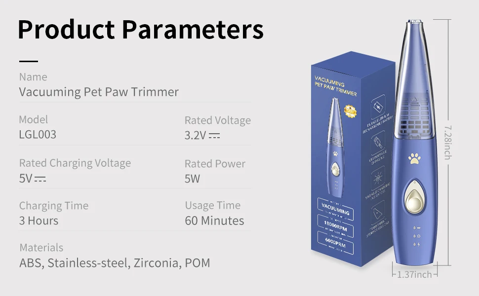 Cordless Pet Paw Trimmer with Professional Vacuum Suction