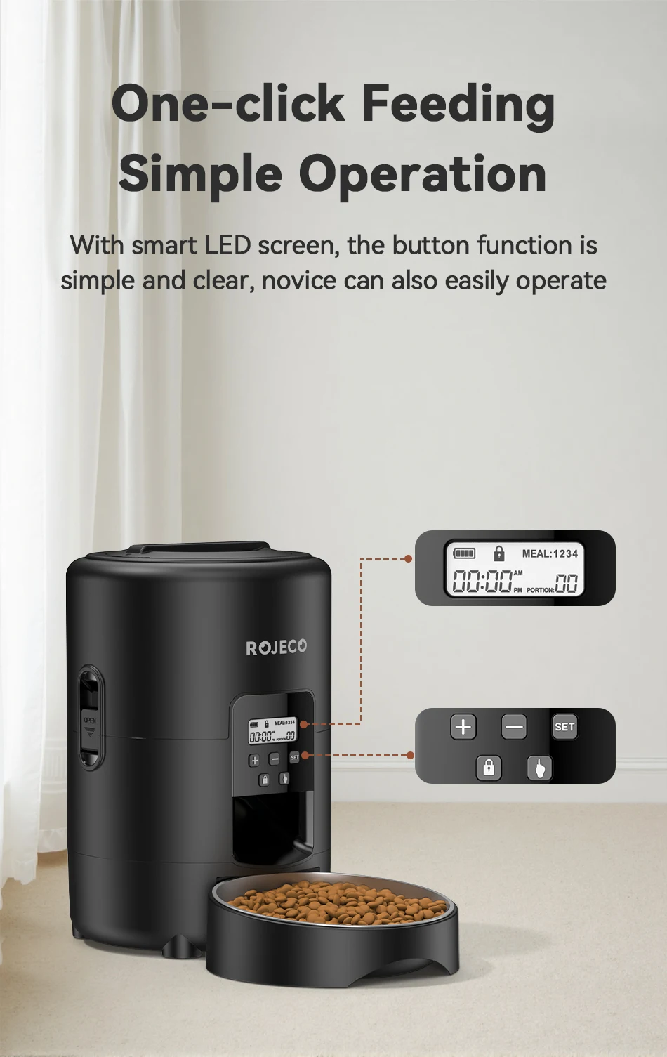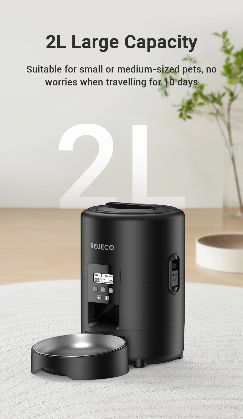 ROJECO 2L Smart Button Control Pet Feeder
