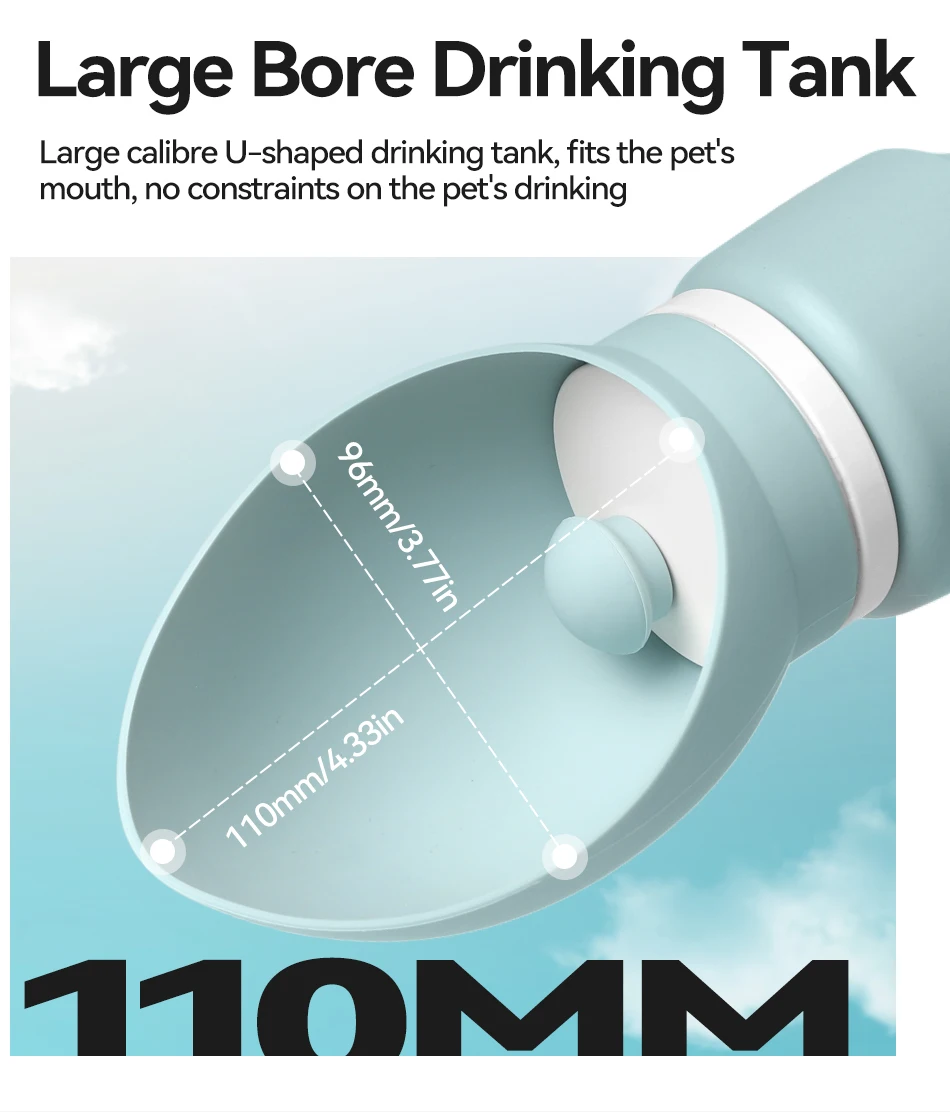 Large calibre U-shaped drinking tank, fits the pet's mouth, no constraints on the pet's drinking