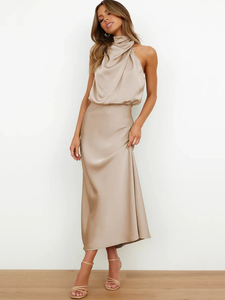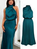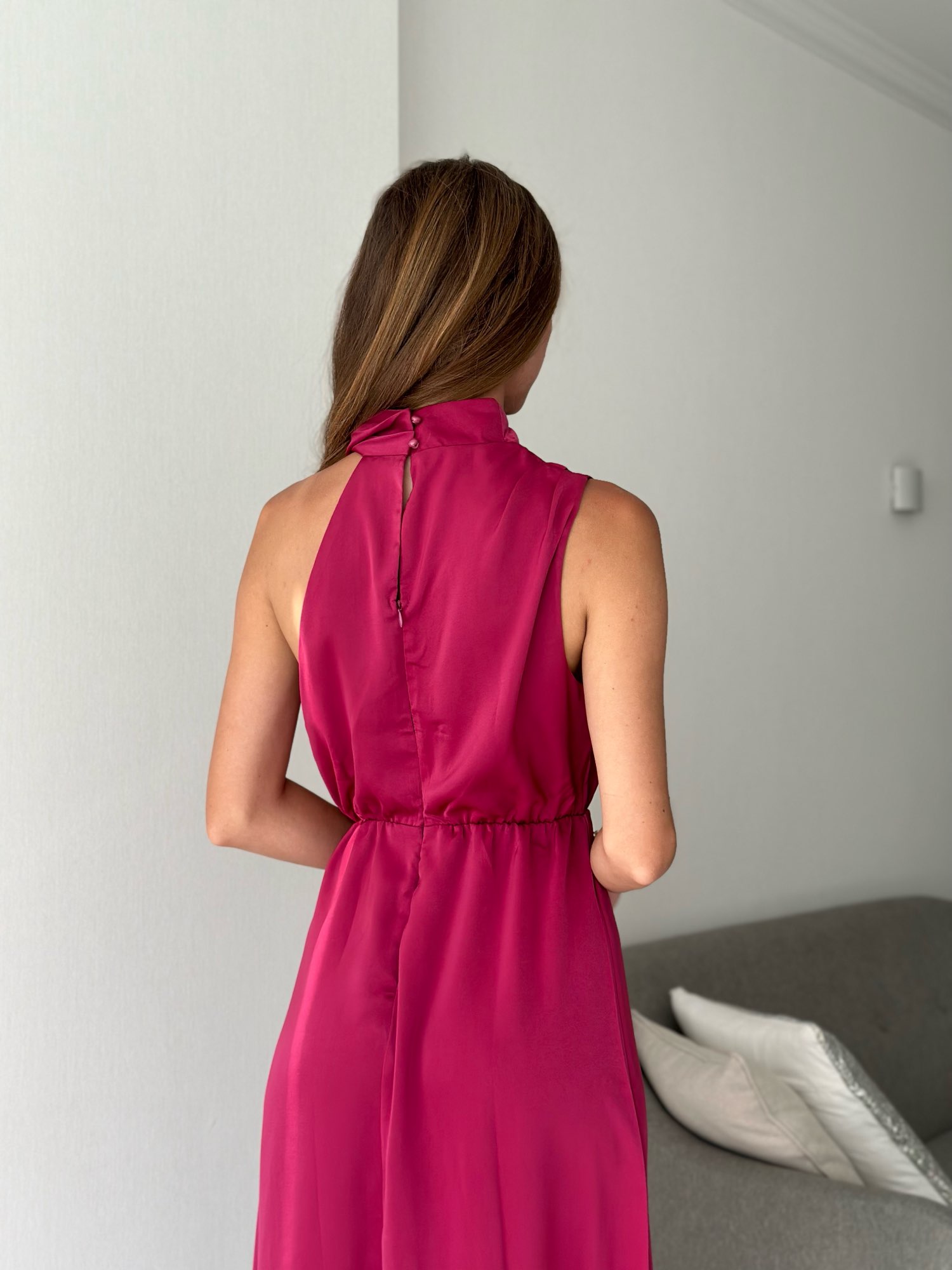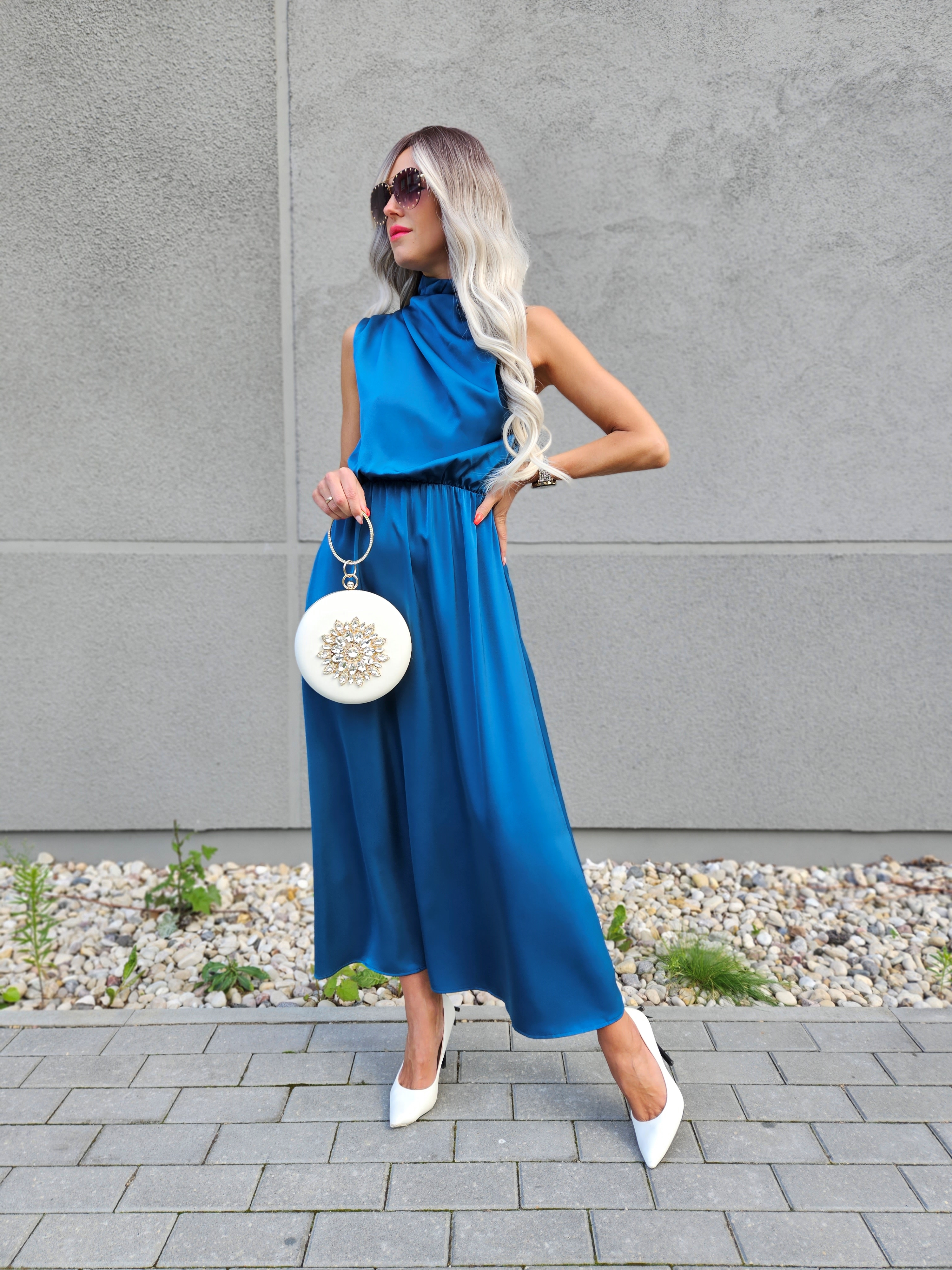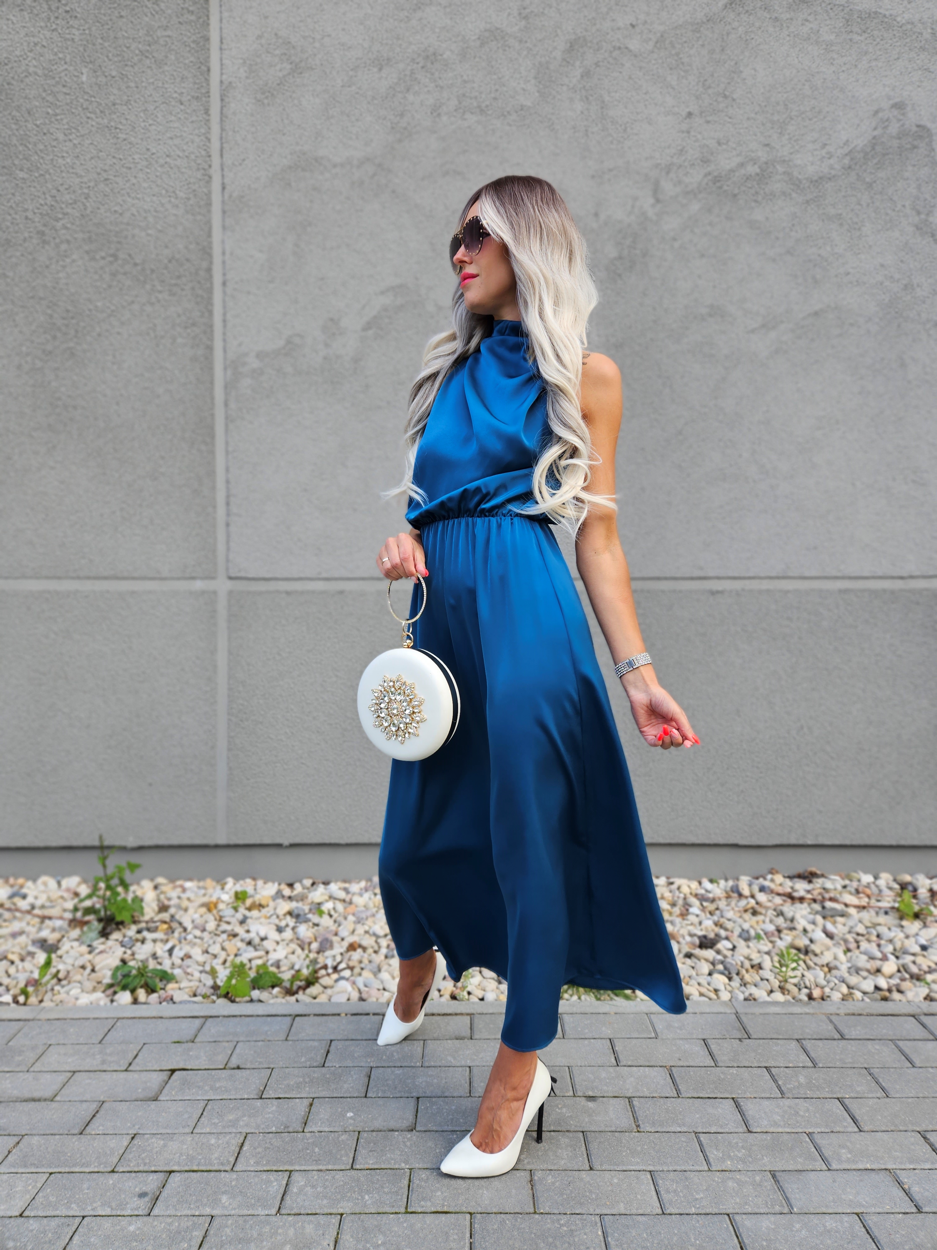 Graceful dress from Gy fashionistas. Holidays and various kinds of gala evenings and special occasions, this is a great occasion to wear a beautiful dress. emphasizes the figure well, but at the same time hides flaws and pulls out the silhouette. A little asymmetry from above, to the waist. The belt is a sewn elastic band. the neck area is beautifully beaten, the collar is a stand, it has two buttons on the back. size S, for: height 172 cm, OG 90 cm, from 60 cm, about 90 cm. The village is ideal. 10 colors. chic satin material, very delicate, no fondness. recommend.