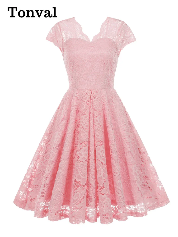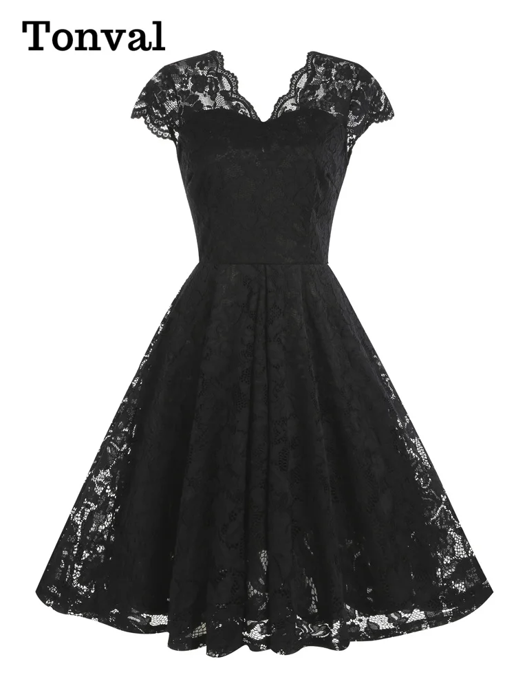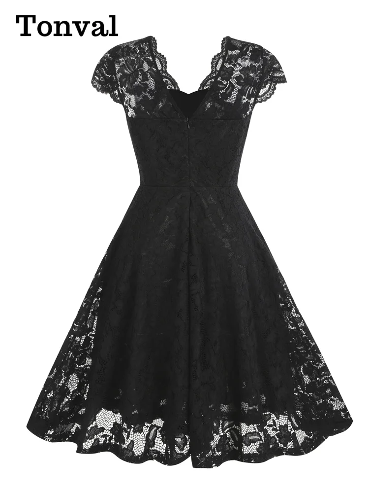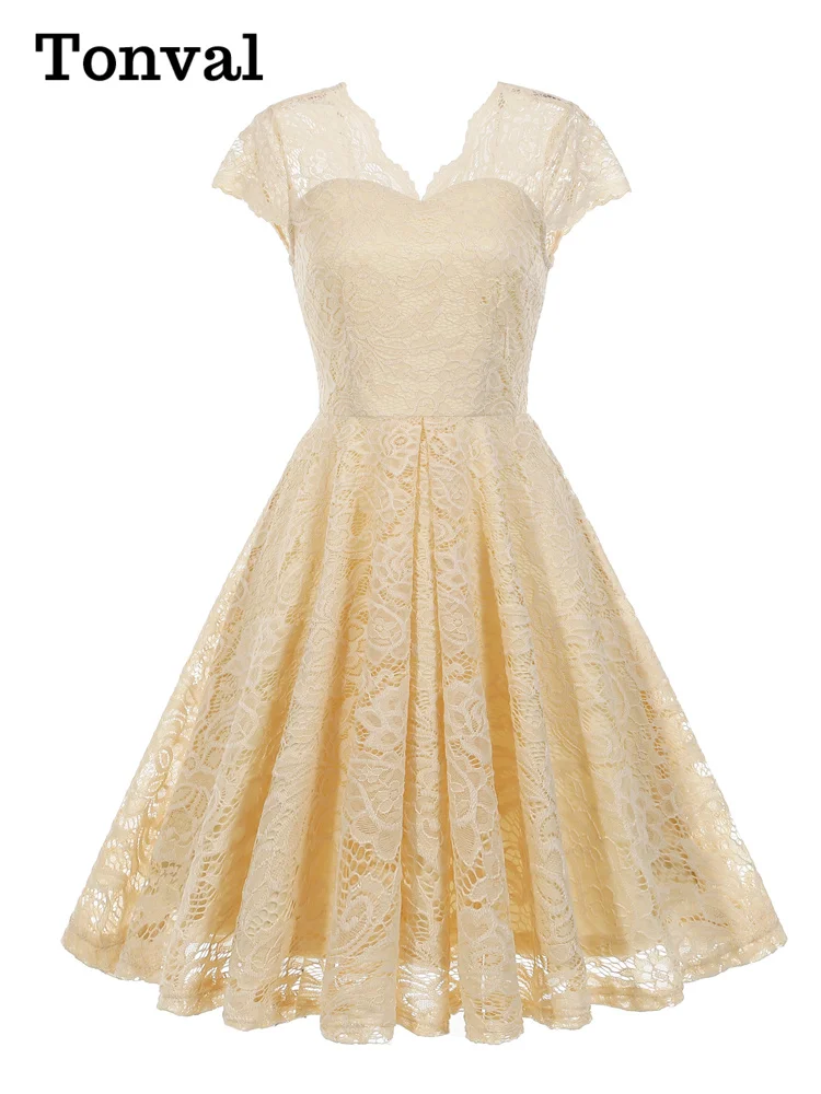 Tonval Vintage Scalloped V Neck Elegant Birthday Dresses