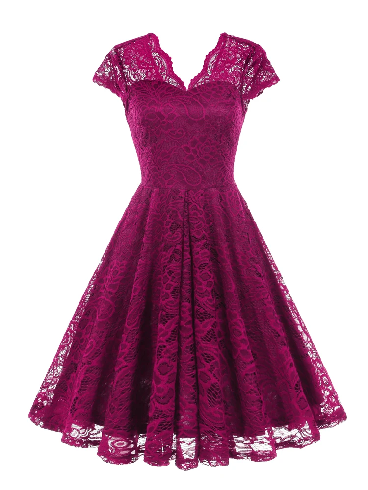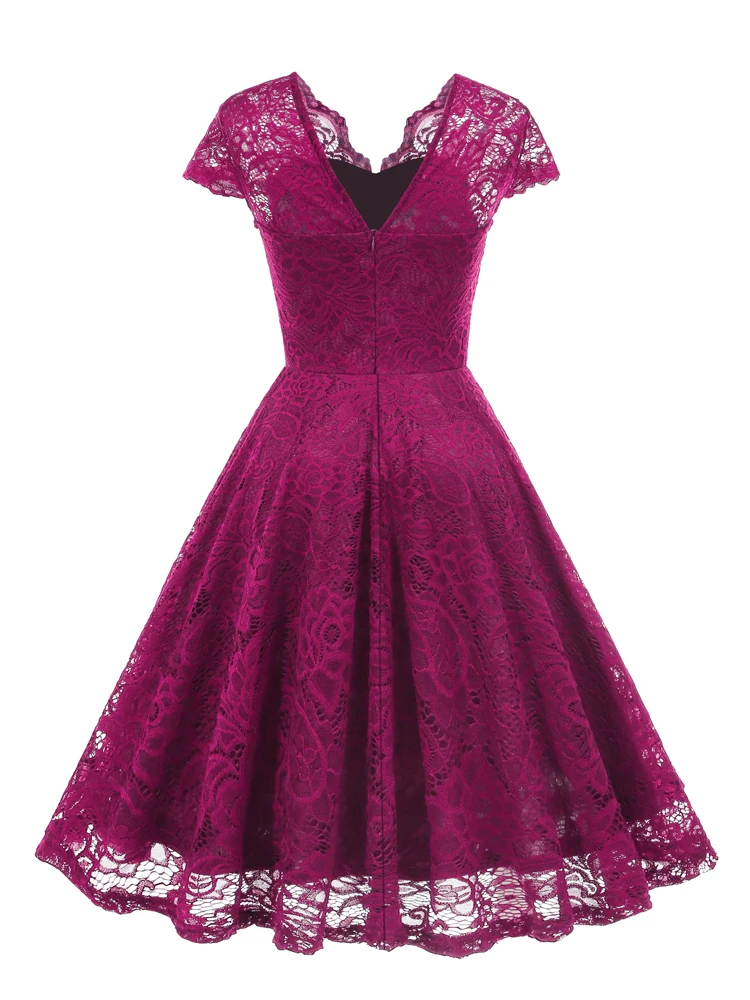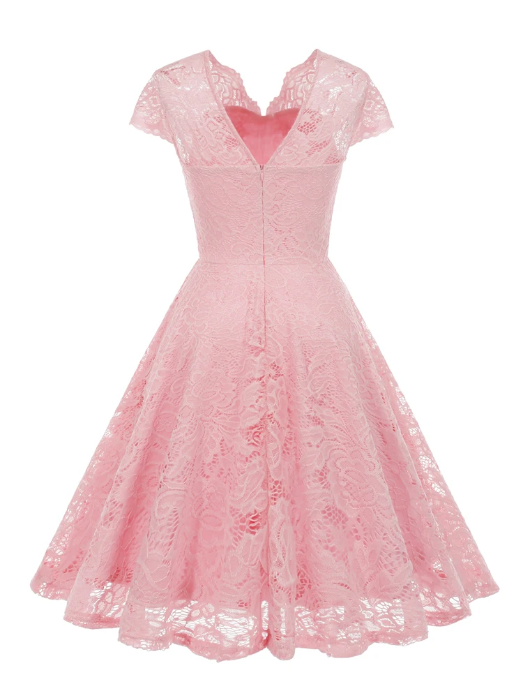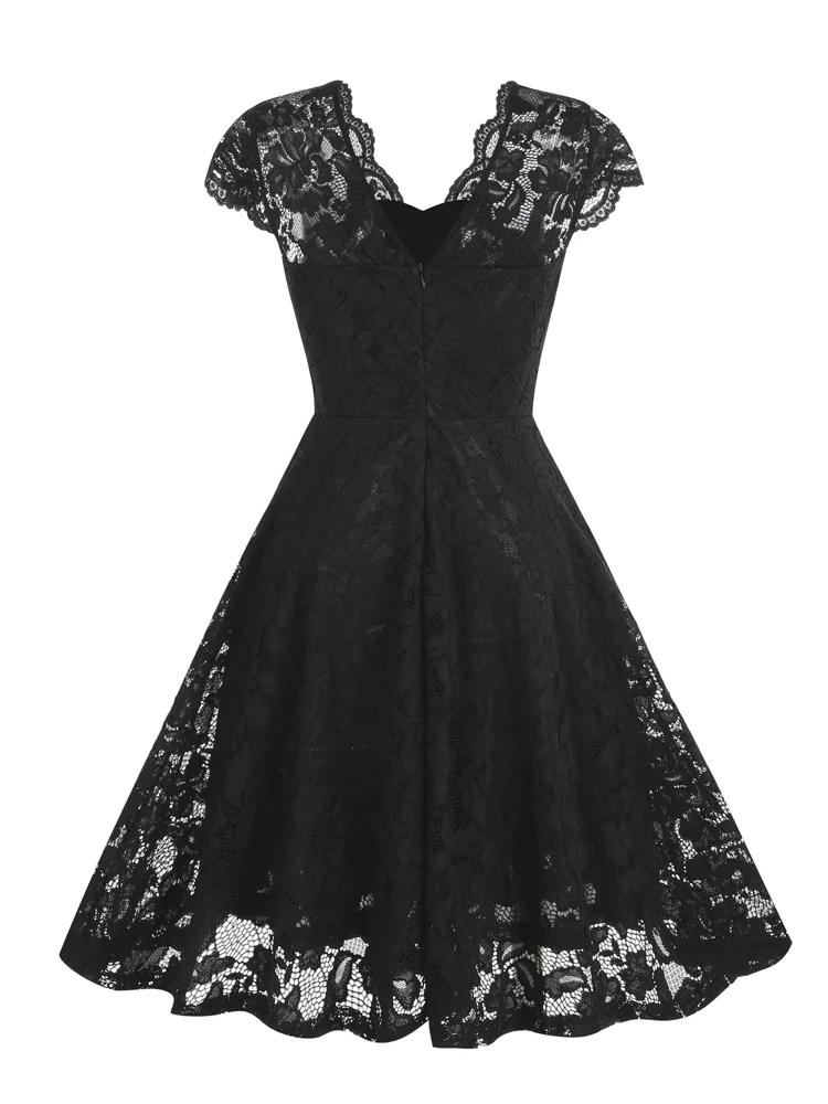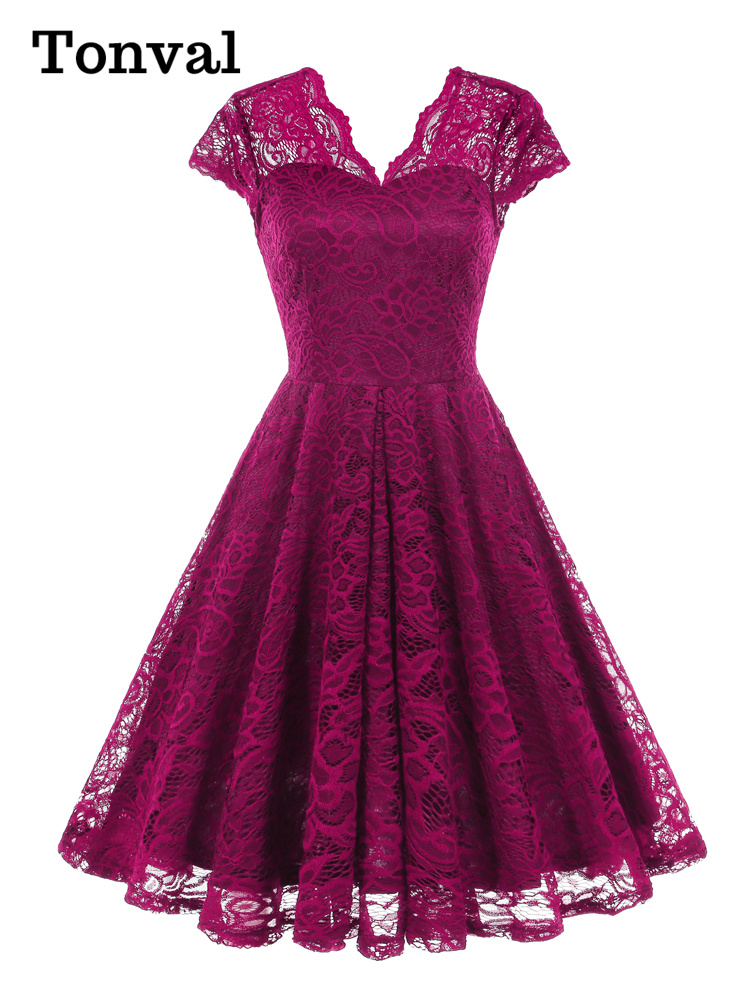 Tonval Vintage Scalloped V Neck Elegant Birthday Dresses