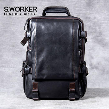 S.WORKER 15-inch Large Capacity Genuine Leather Laptop Backpack