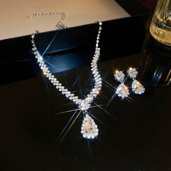 Sparkling Rhinestone Necklace Drop Earrings For Women