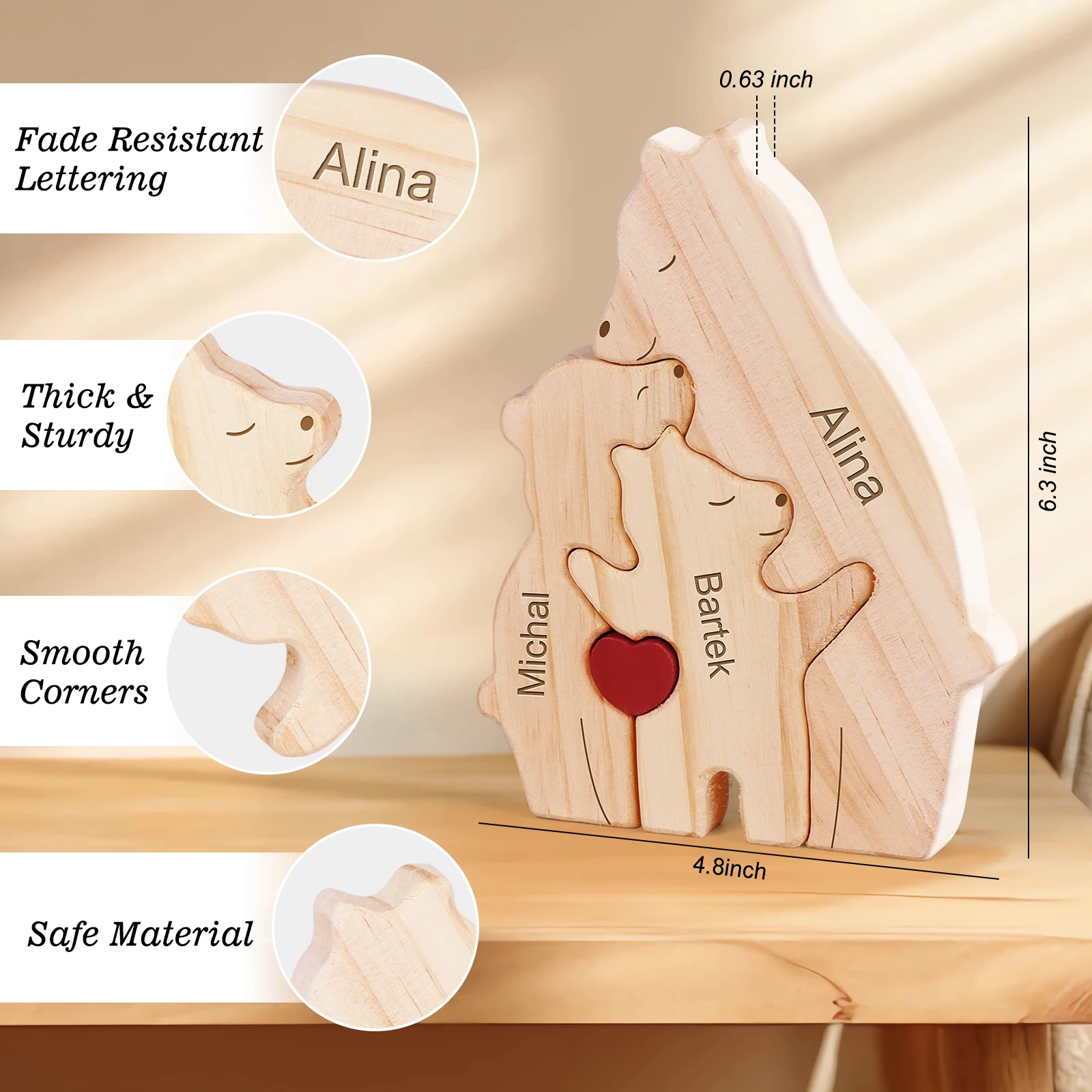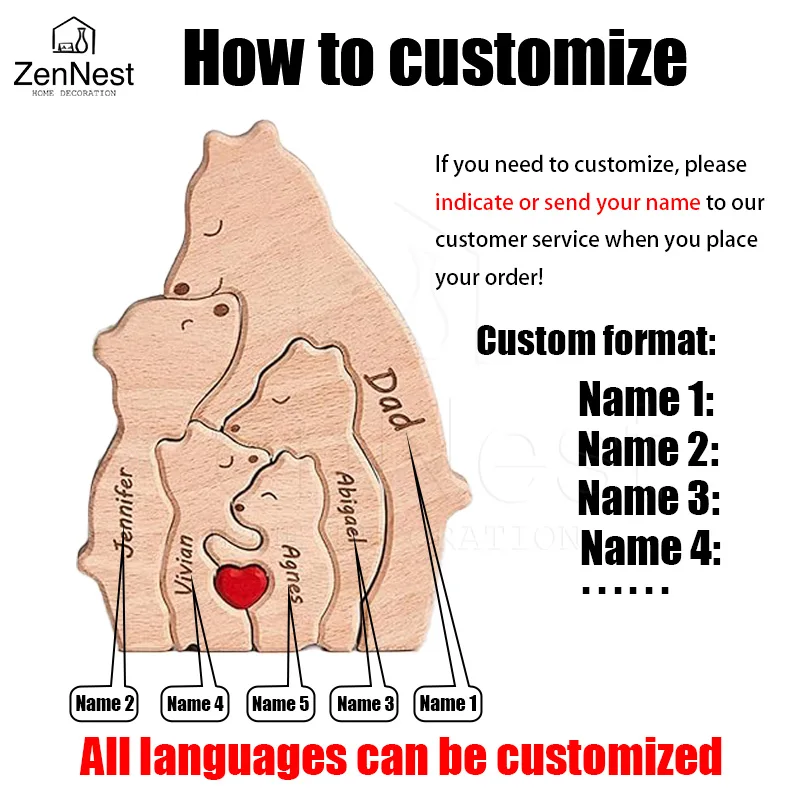 Custom Personalized Wooden Bear Family Art Puzzle