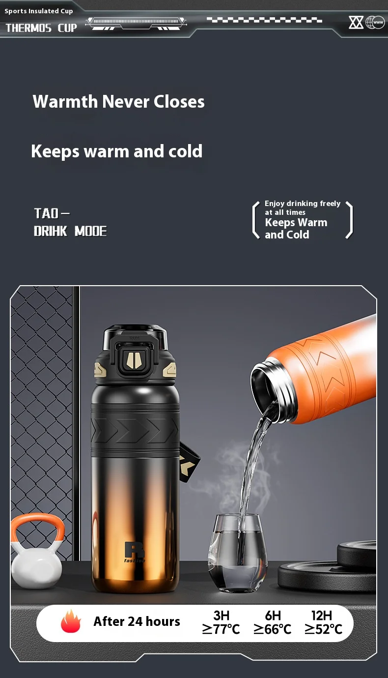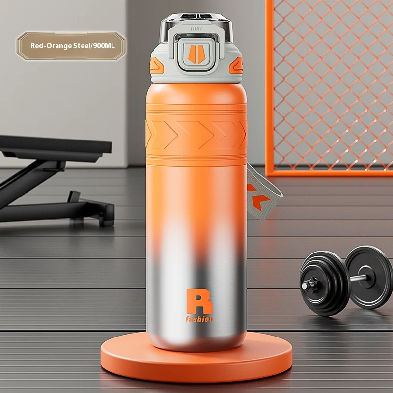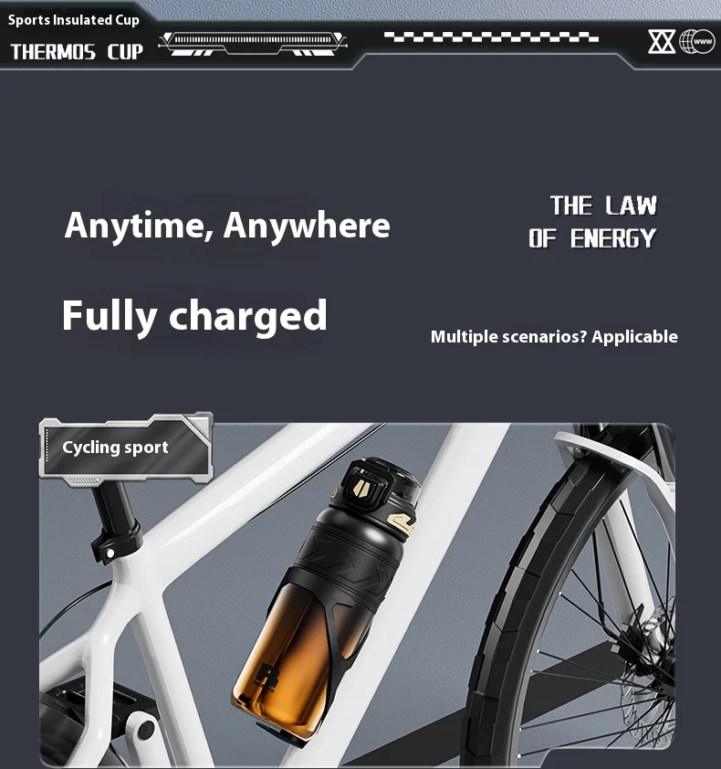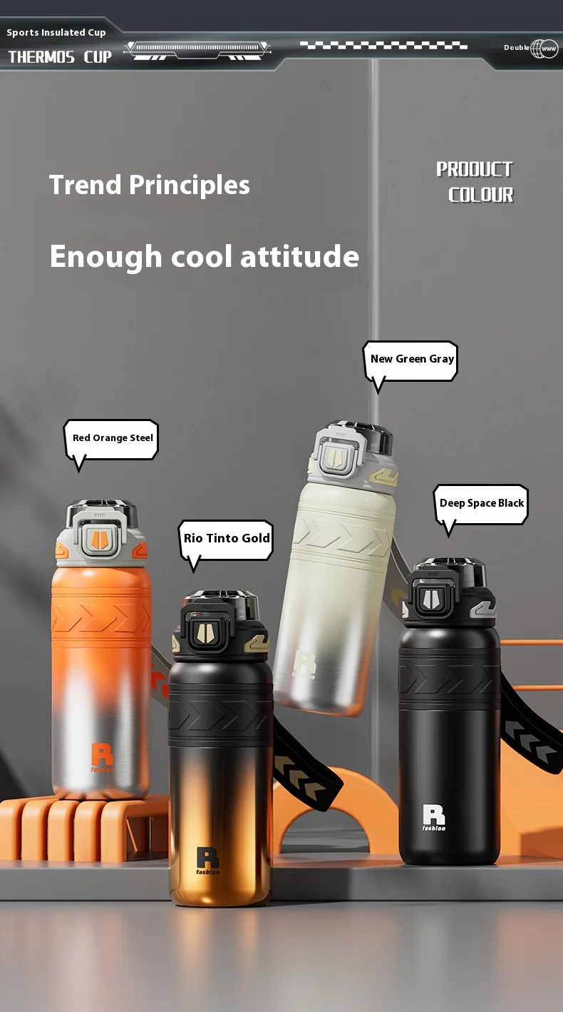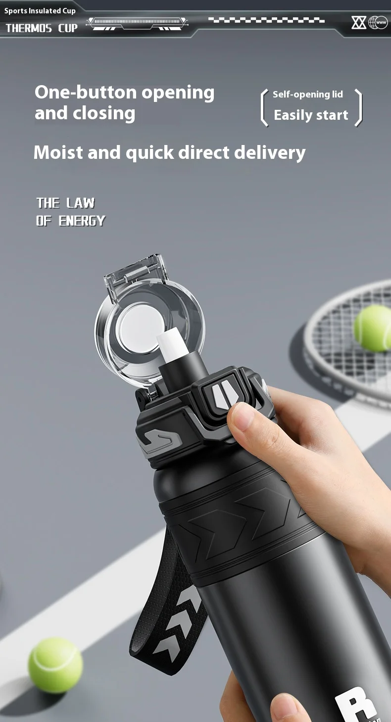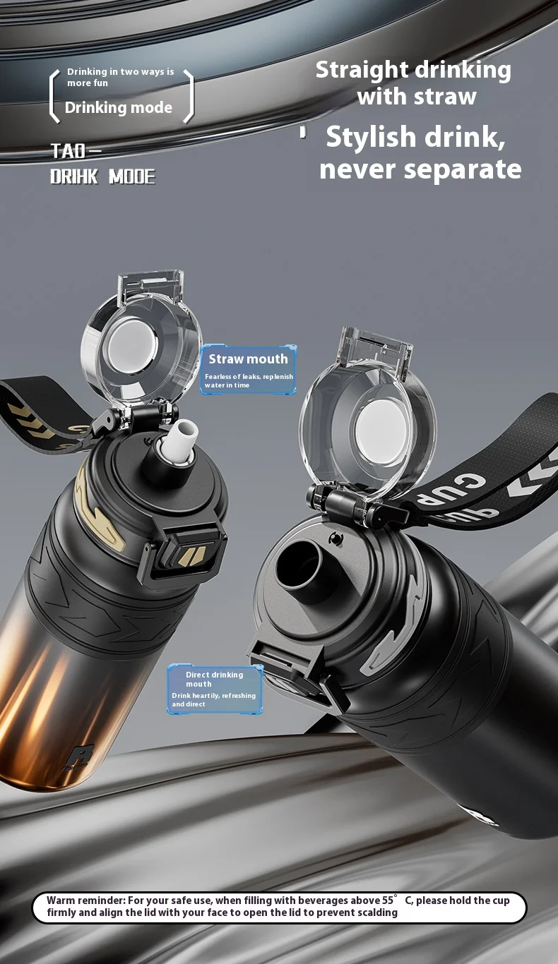 Energetic Large-Capacity Stainless Steel Sports Straw Water Bottle