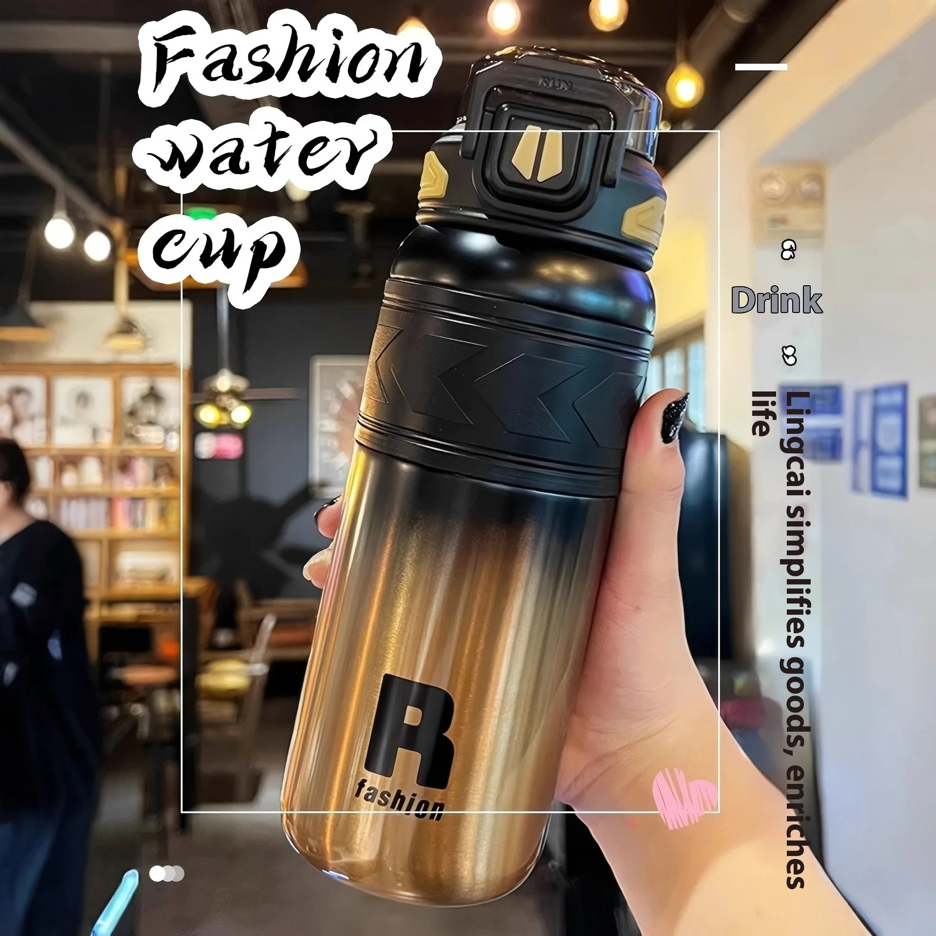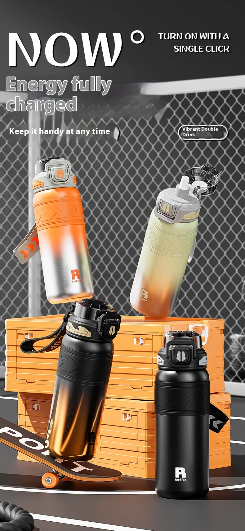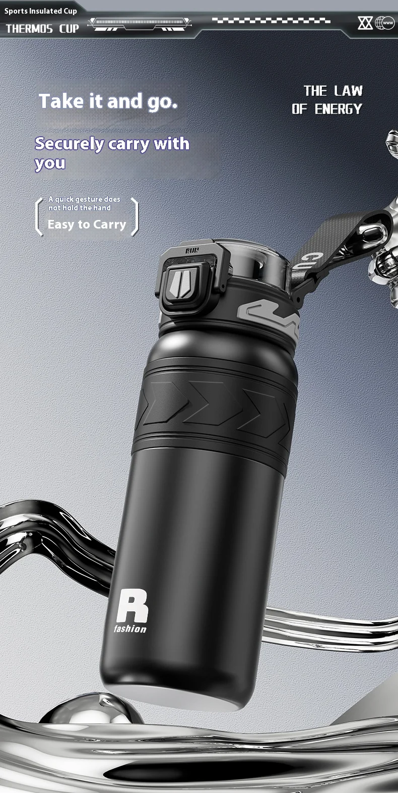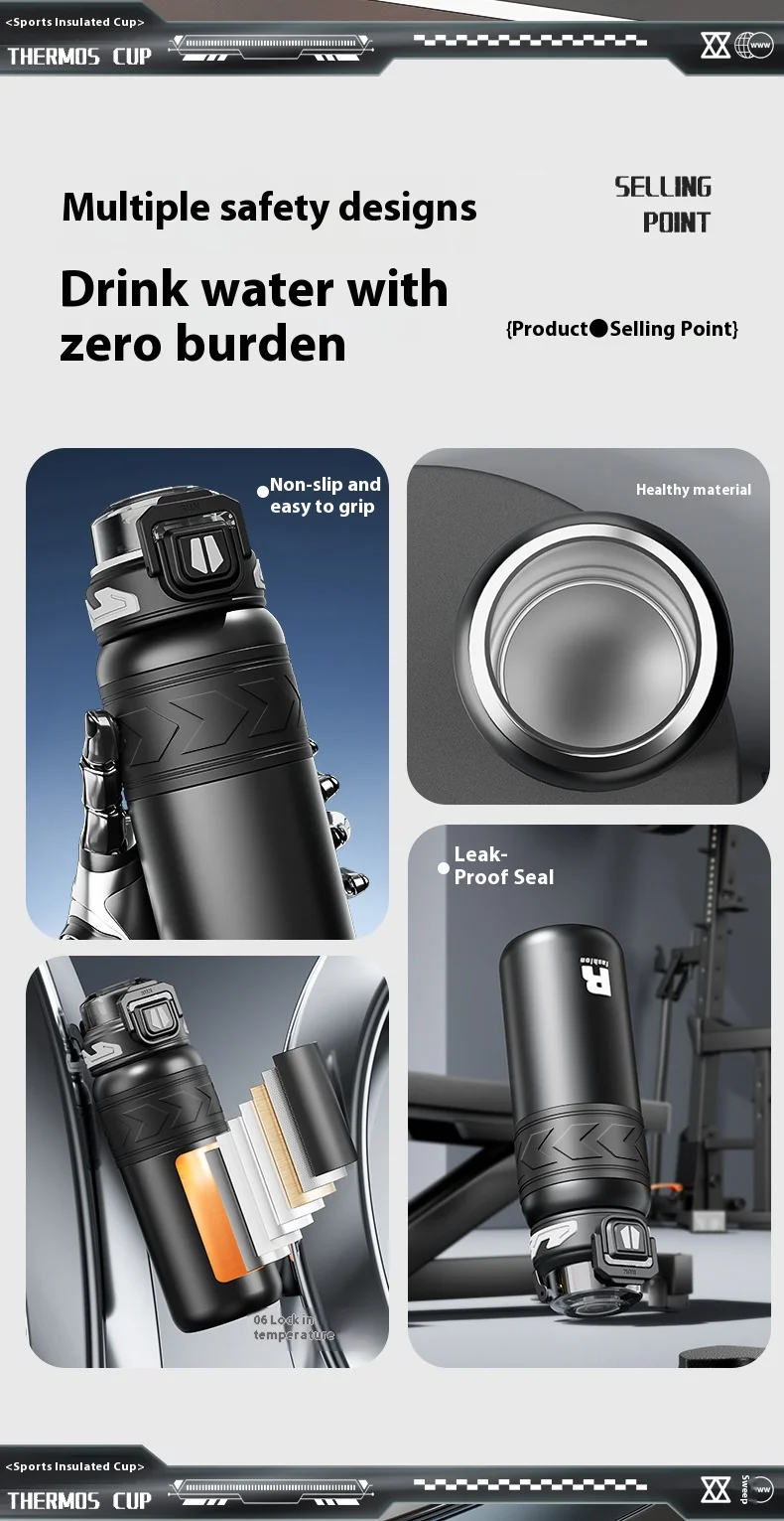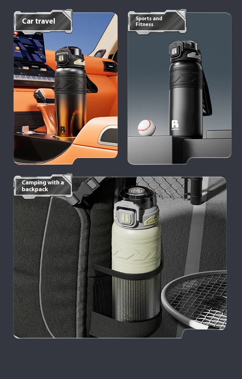 Energetic Large-Capacity Stainless Steel Sports Straw Water Bottle