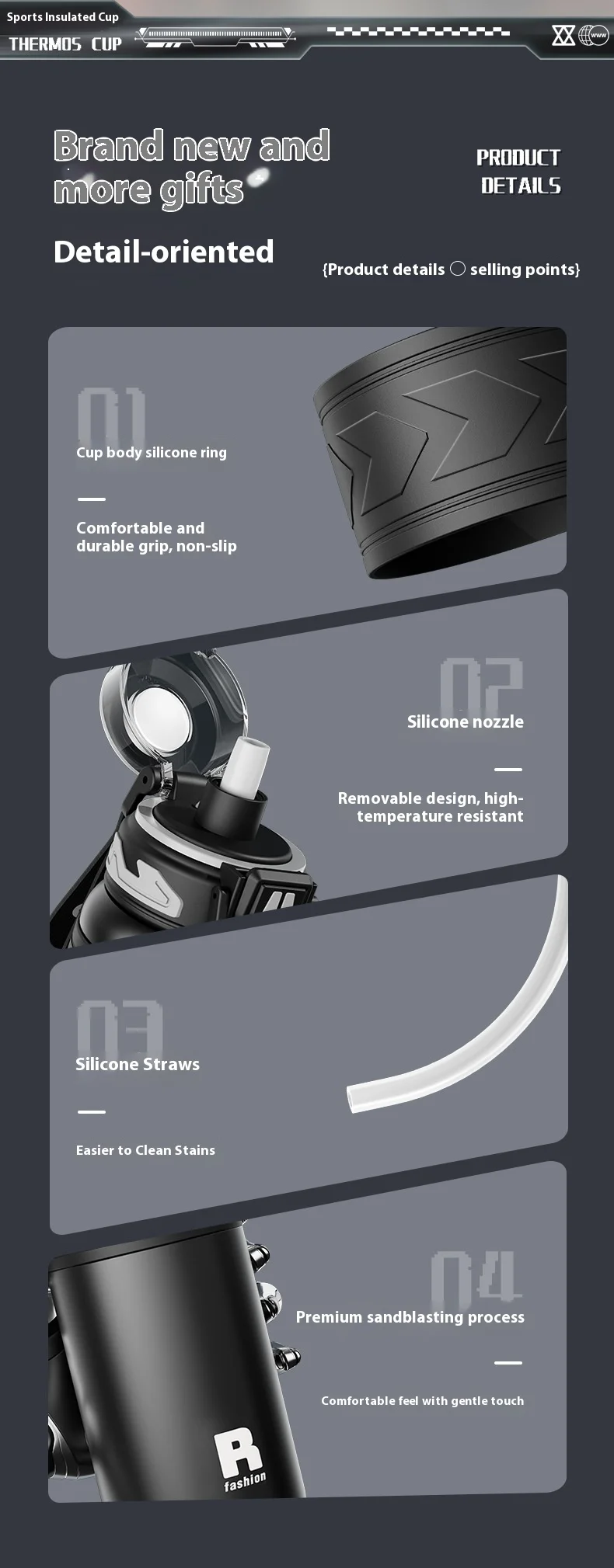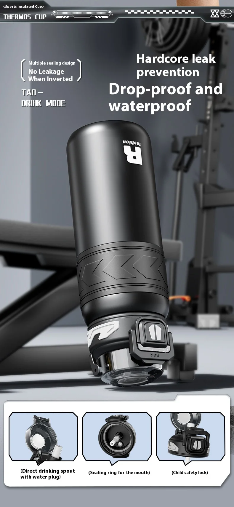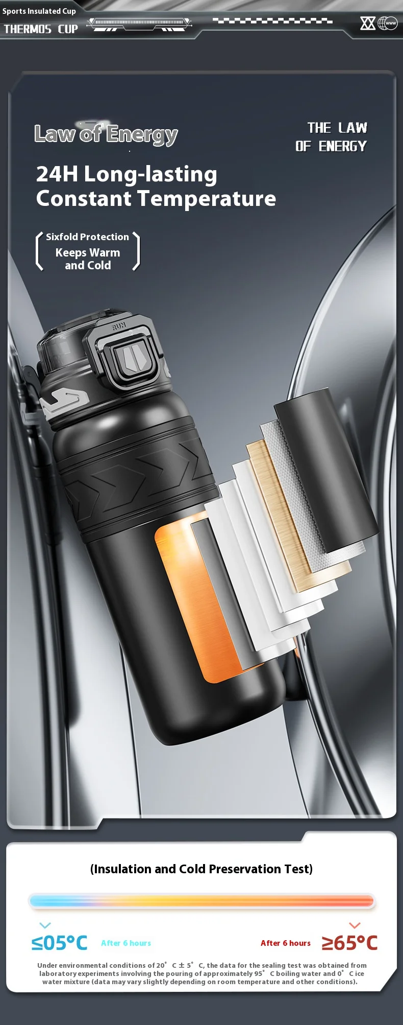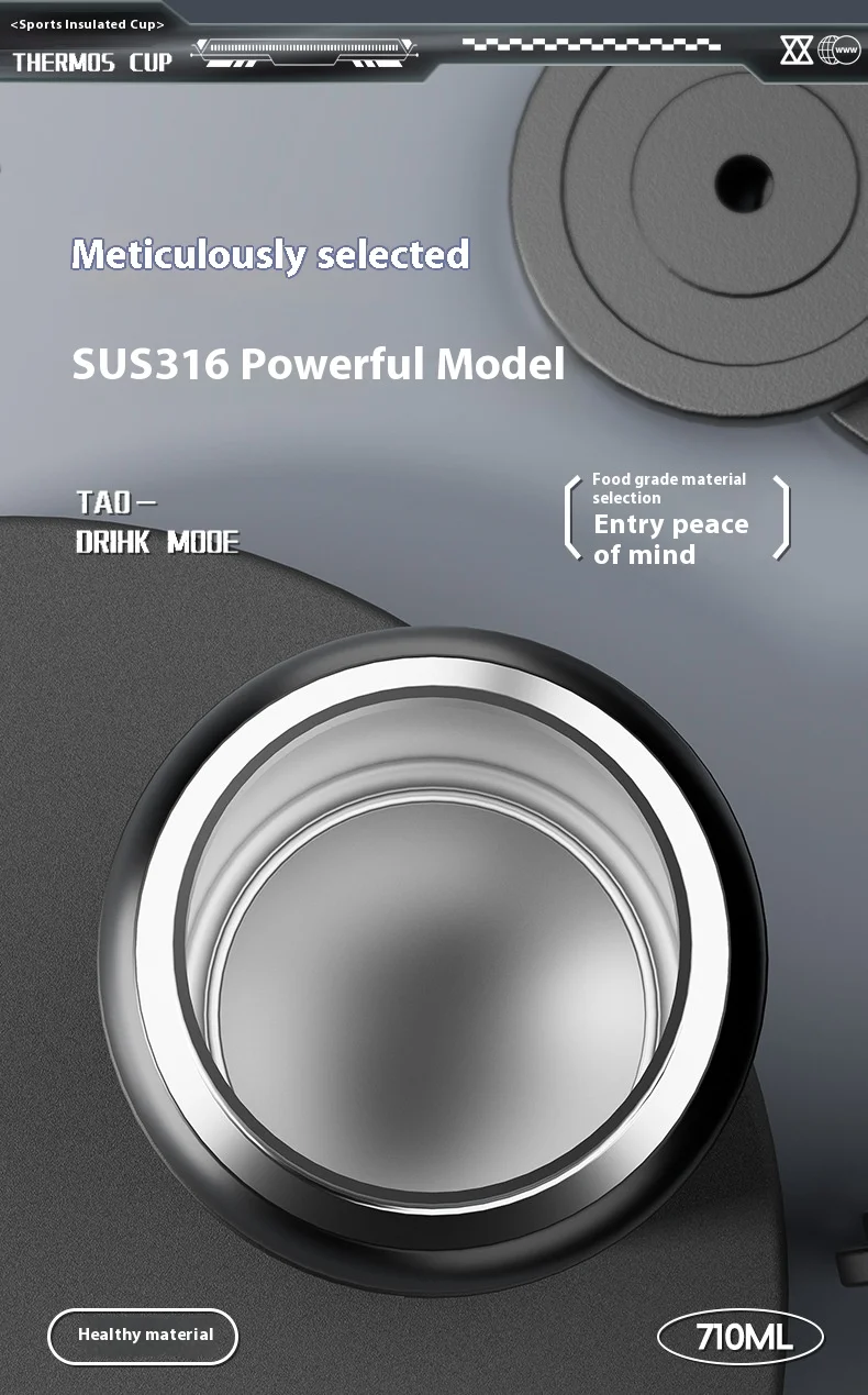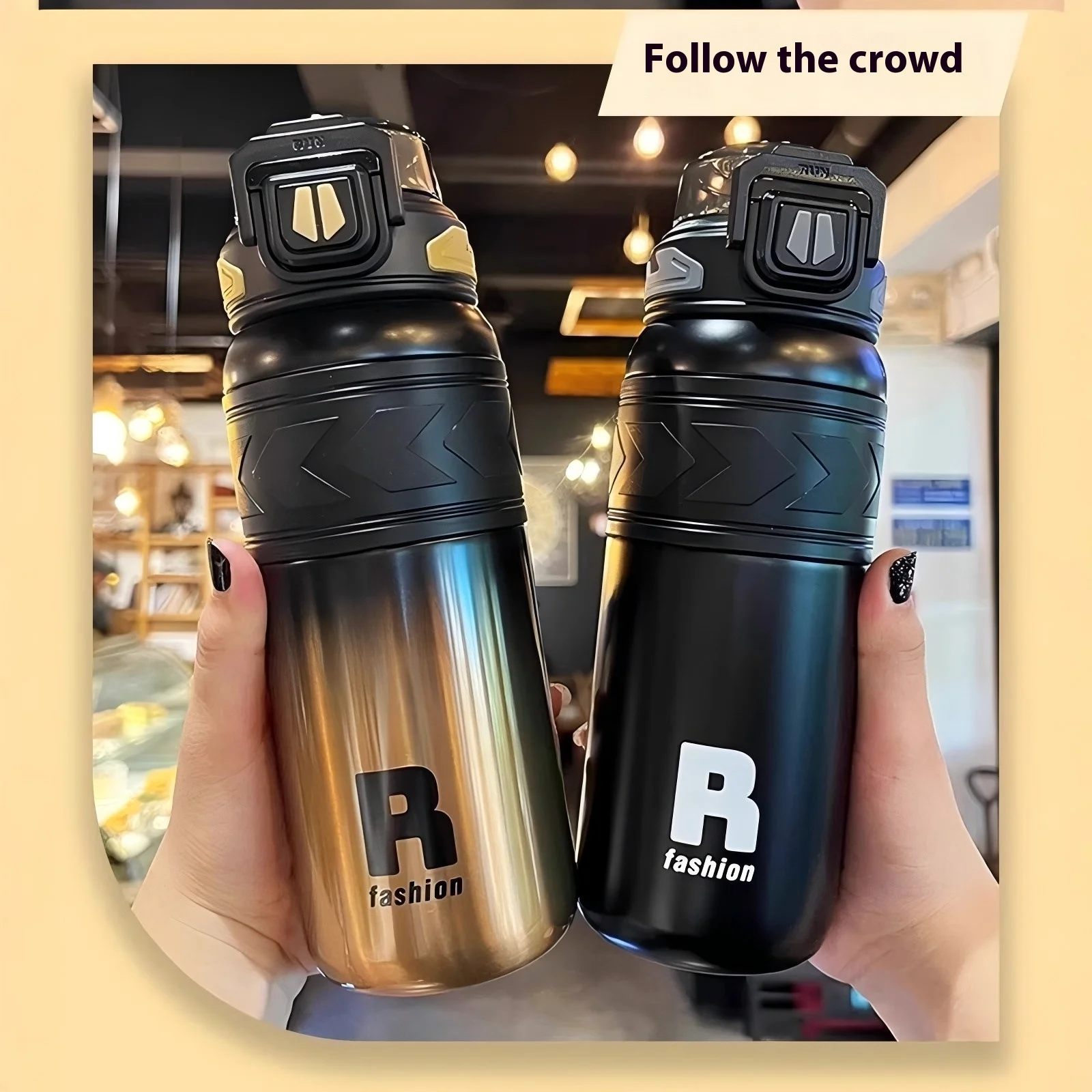 Energetic Large-Capacity Stainless Steel Sports Straw Water Bottle
