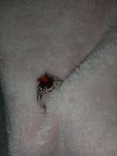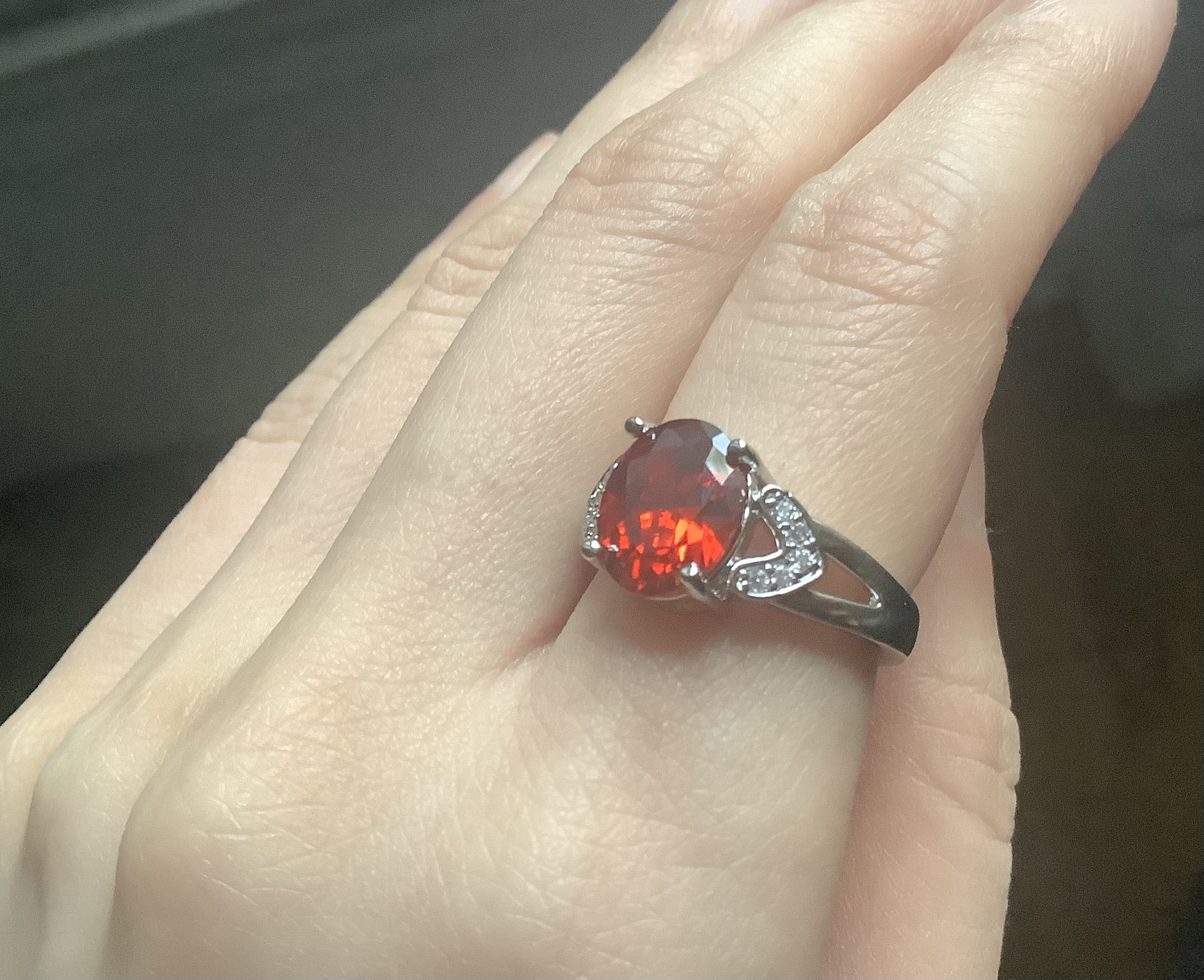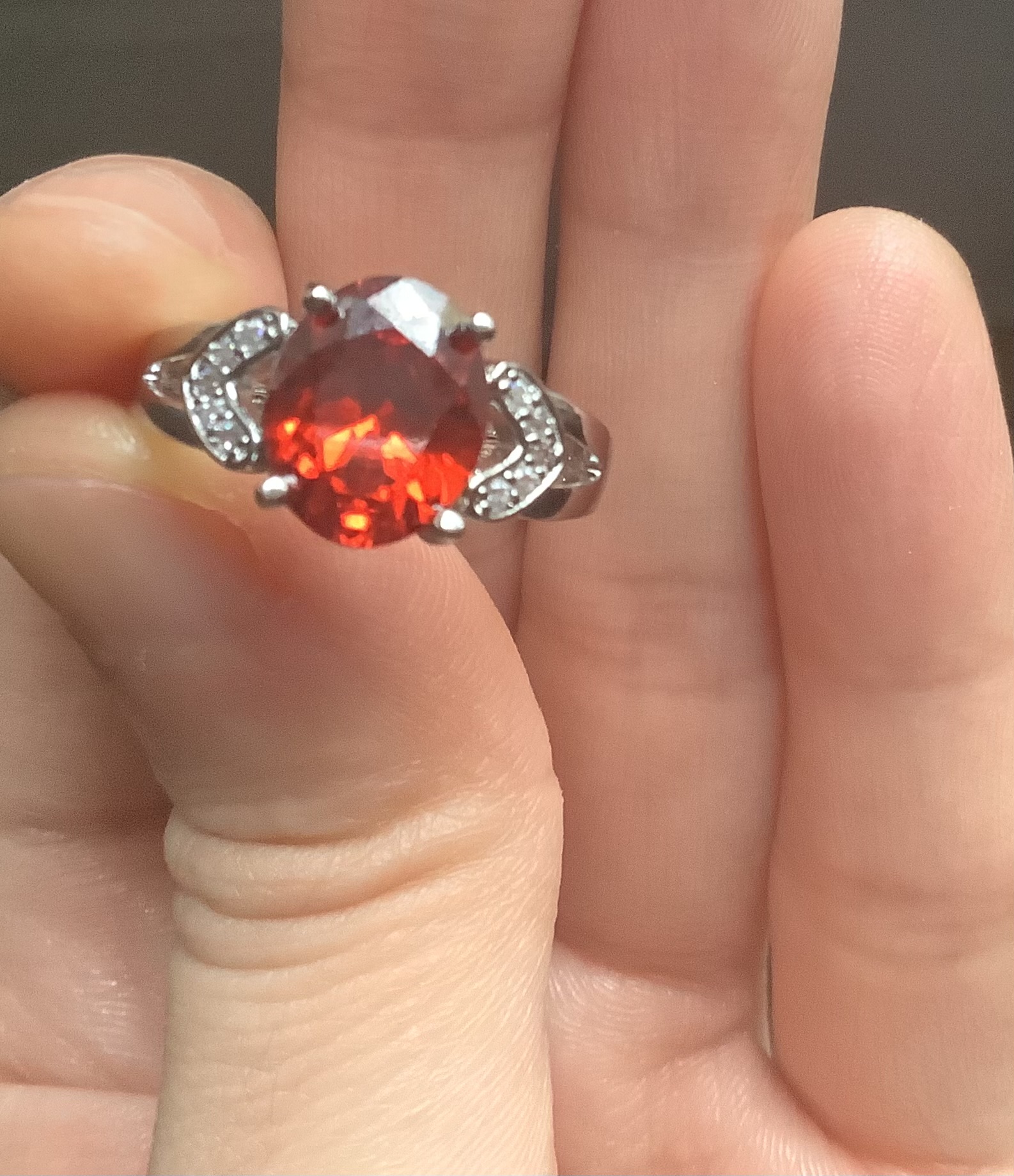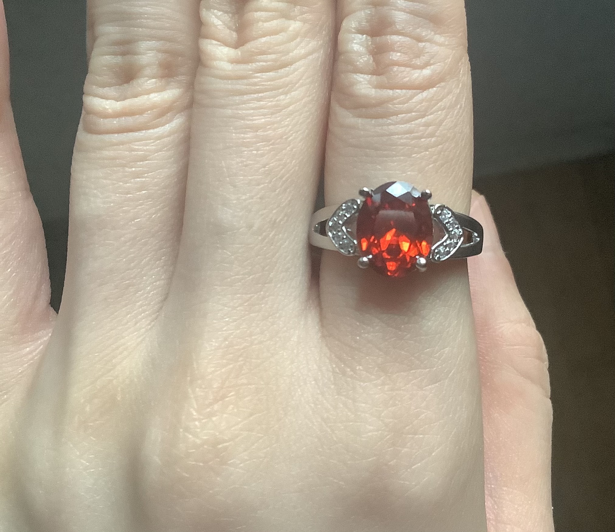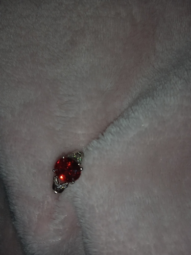 It looks very pretty when worn! The red zircon stone looks very high quality and sparkles a lot. The colour looks a bit red brownish to me because portions look dark(like shadow is cast). I wish it was more ruby red. The silver looks smooth. For this price it is amazing. Fast shipping. Thank you